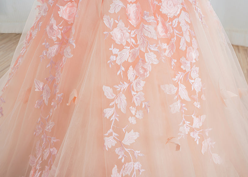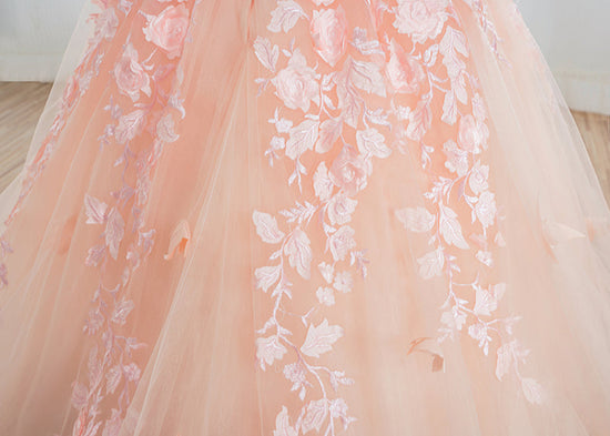 Beautiful Long Ball Gown Tulle Appliques Lace Flower girl dress