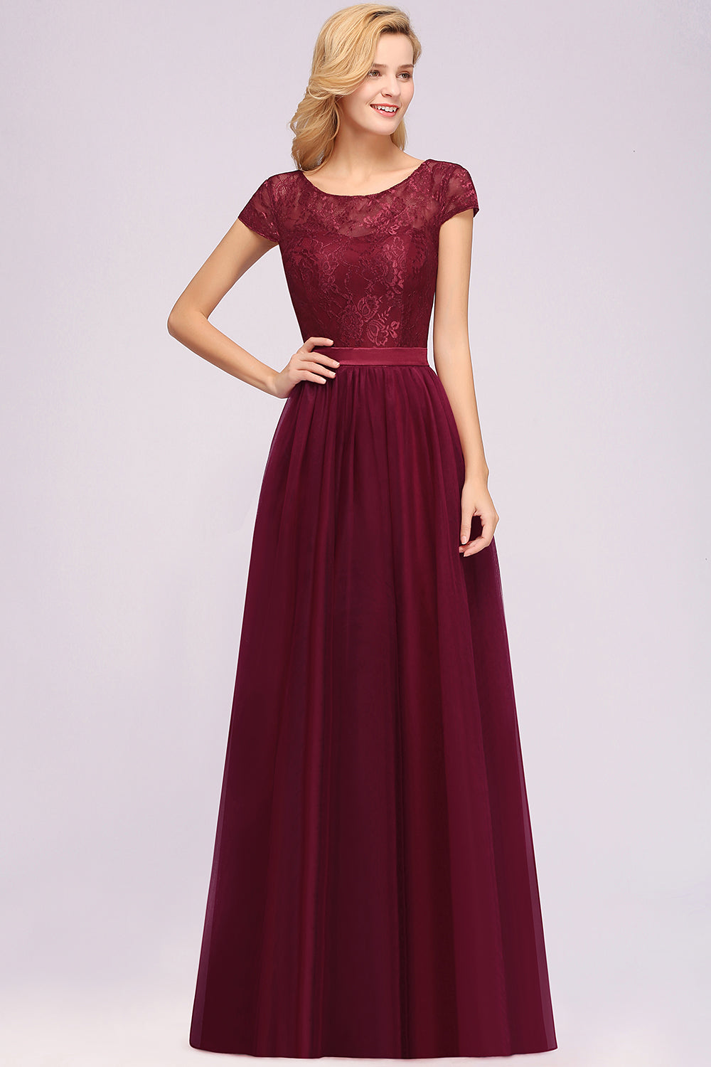 A-Line Chiffon Jewel Sleeveless Long Bridesmaid Dresses with Ruffles