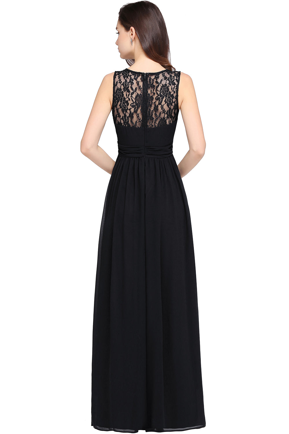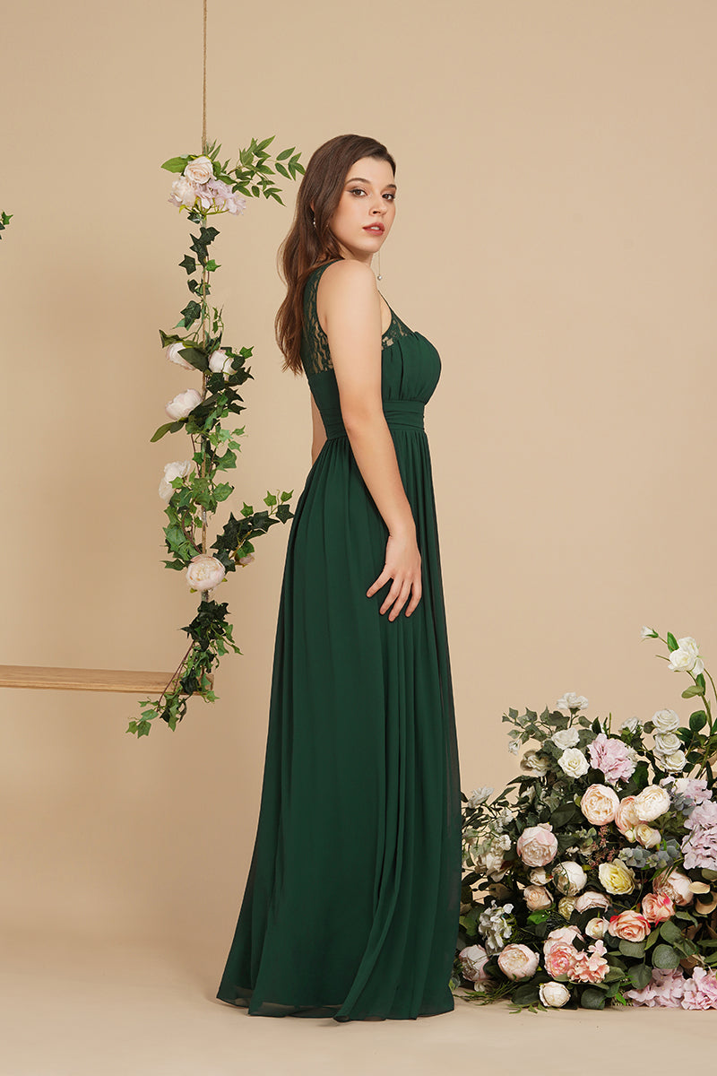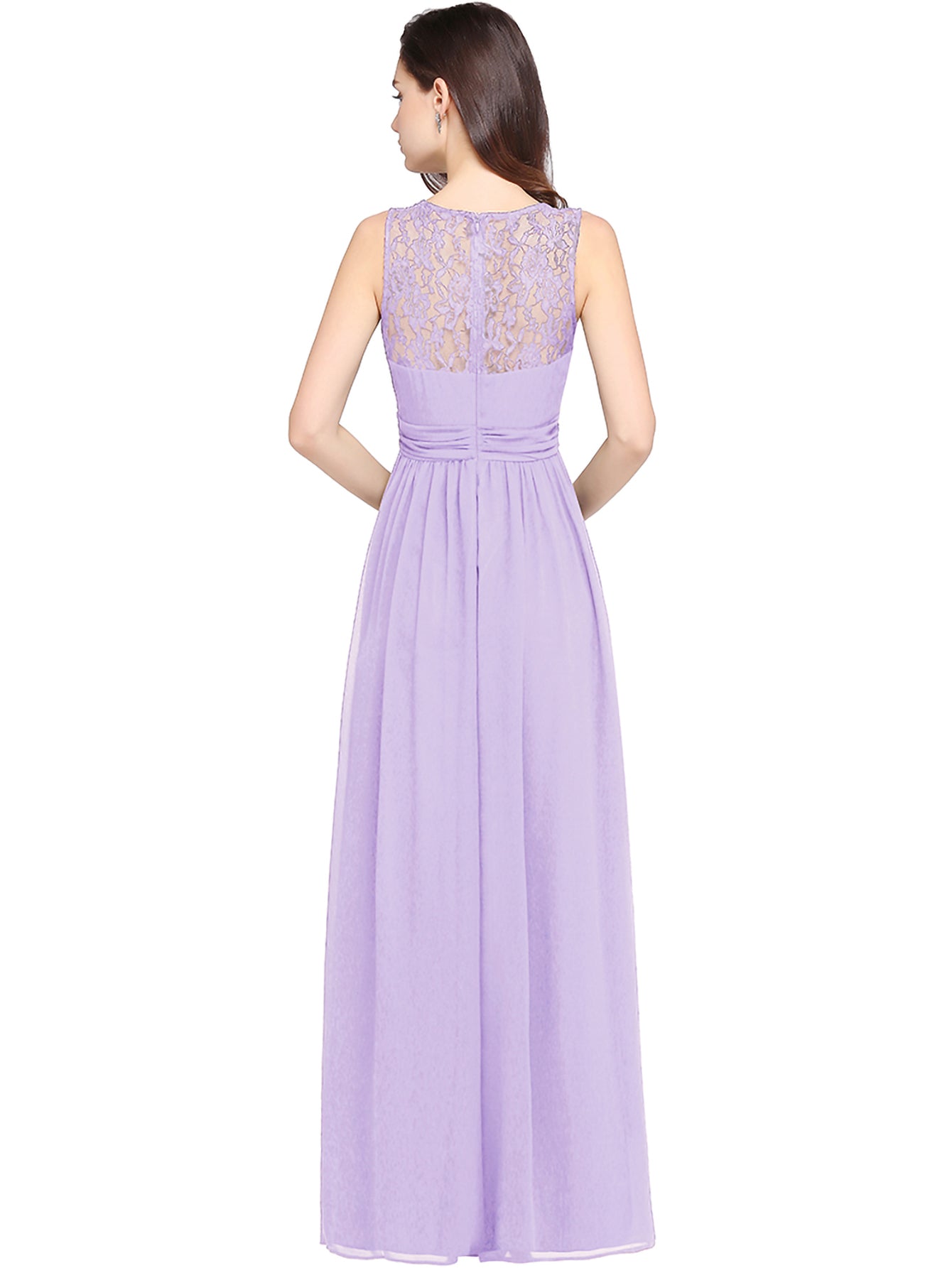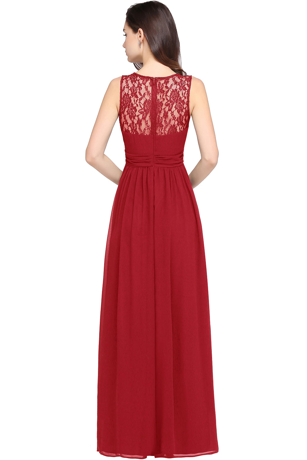 This Long Sheath Round neck Chiffon Lace Bridesmaid Dress is the perfect choice for your special day. It's lightweight and breathable chiffon fabric offers lasting comfort, while the exquisite lace detail and elegant round neckline provide a timeless, sophisticated look.