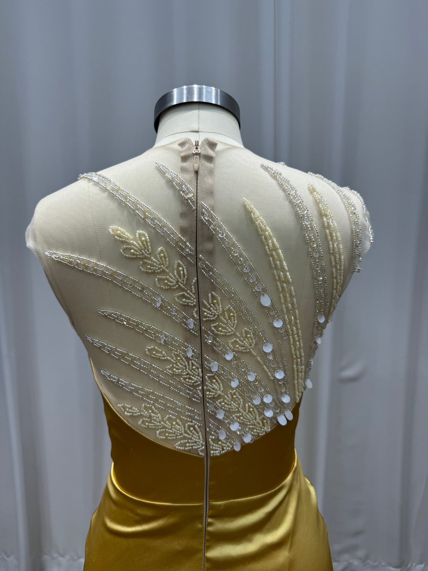 This elegant long mermaid evening dress is crafted from luxurious satin in a rich gold hue, designed to enhance your silhouette with a flattering sleeveless cut. Intricately beaded details add a touch of refined glamour, making it an ideal choice for formal occasions where sophistication is paramount. Perfectly combining classic style with contemporary elegance, this gown ensures you stand out with timeless grace.