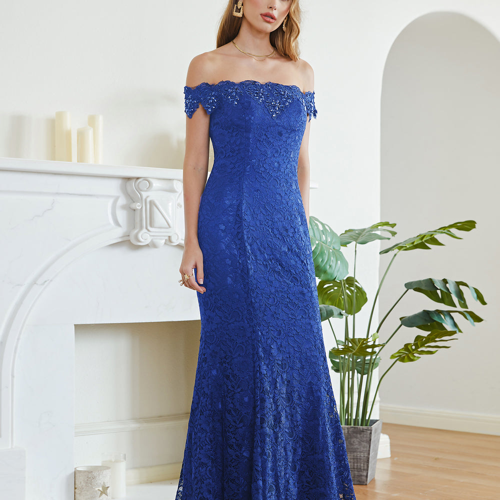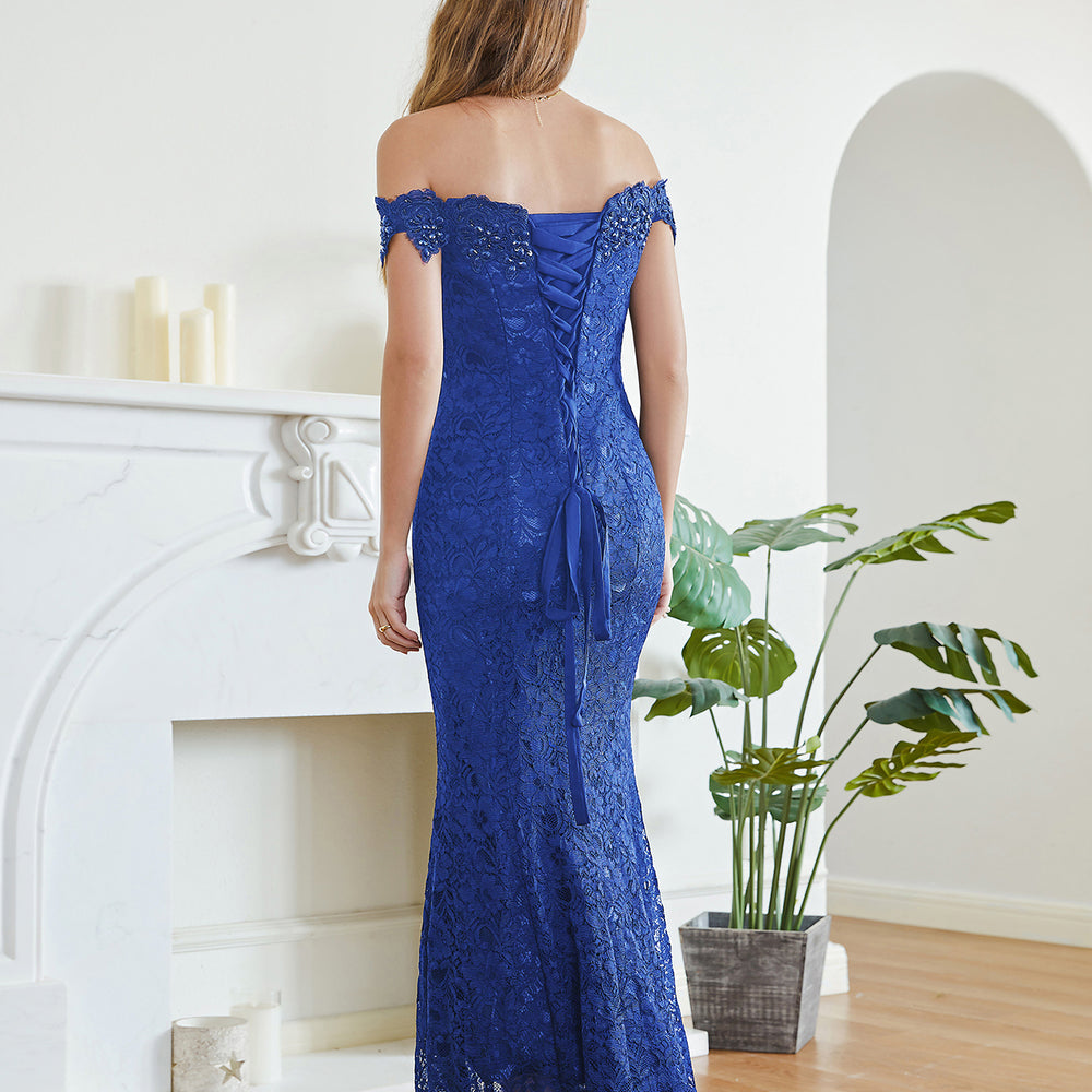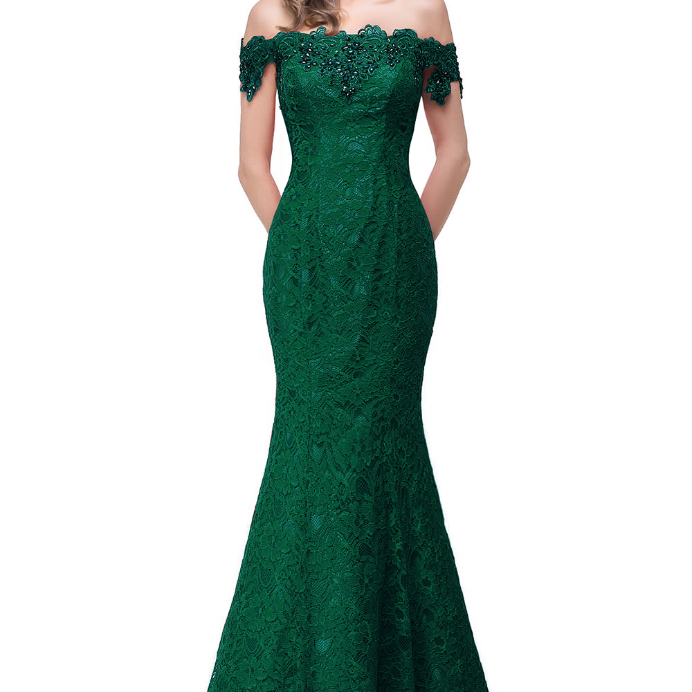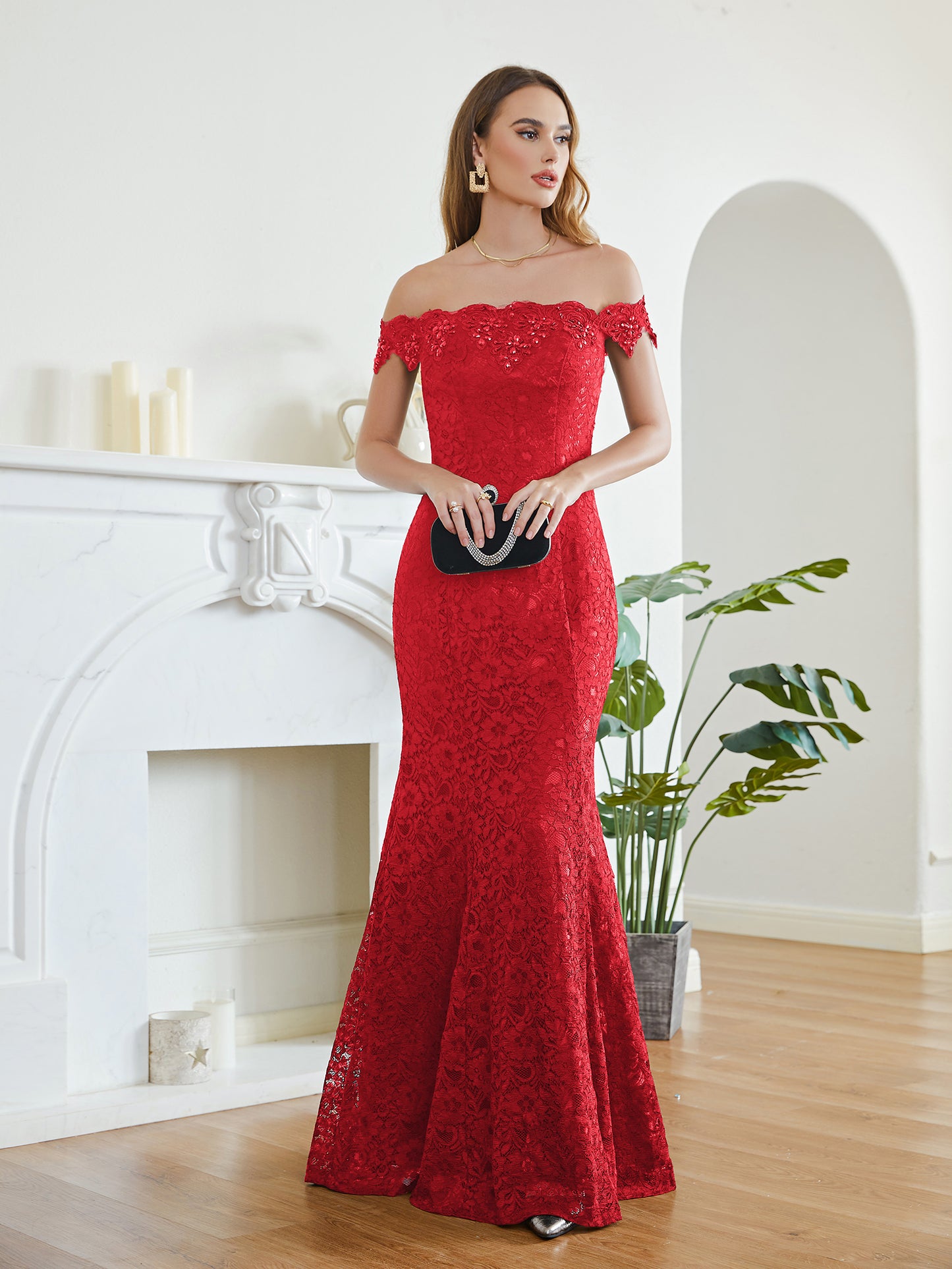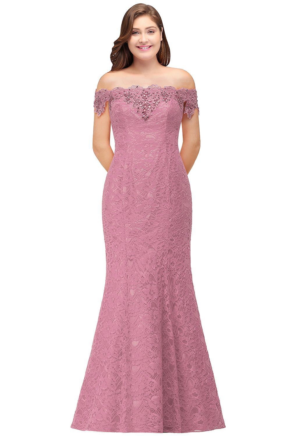 Long Off the Shoulder Lace Floor Length Mermaid Evening Dresses