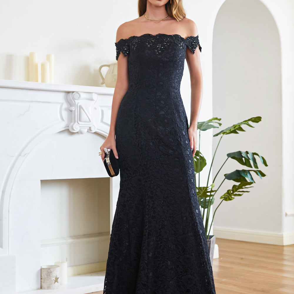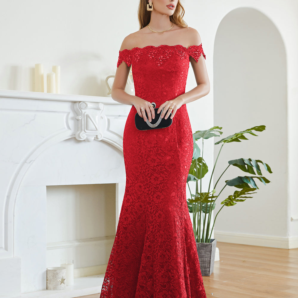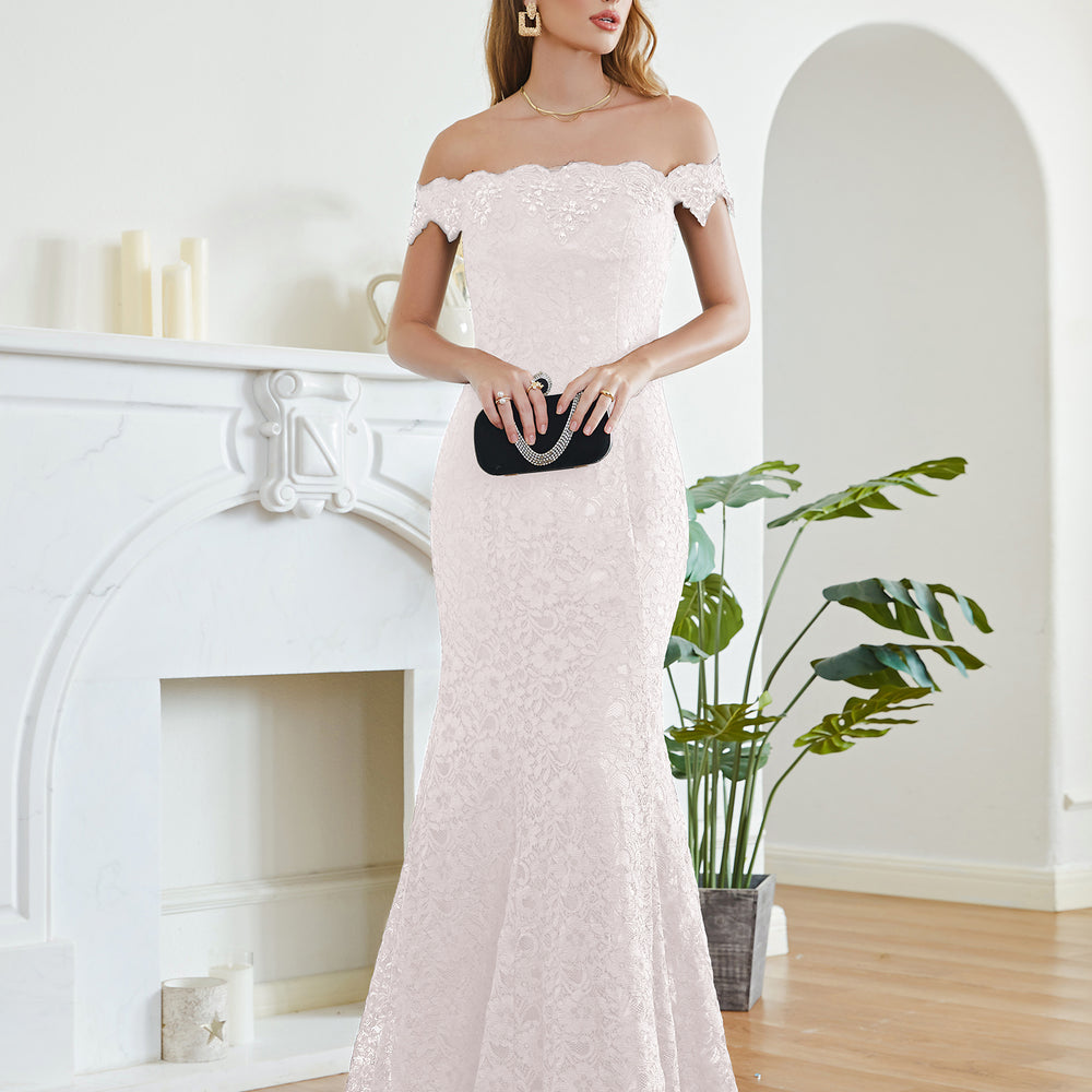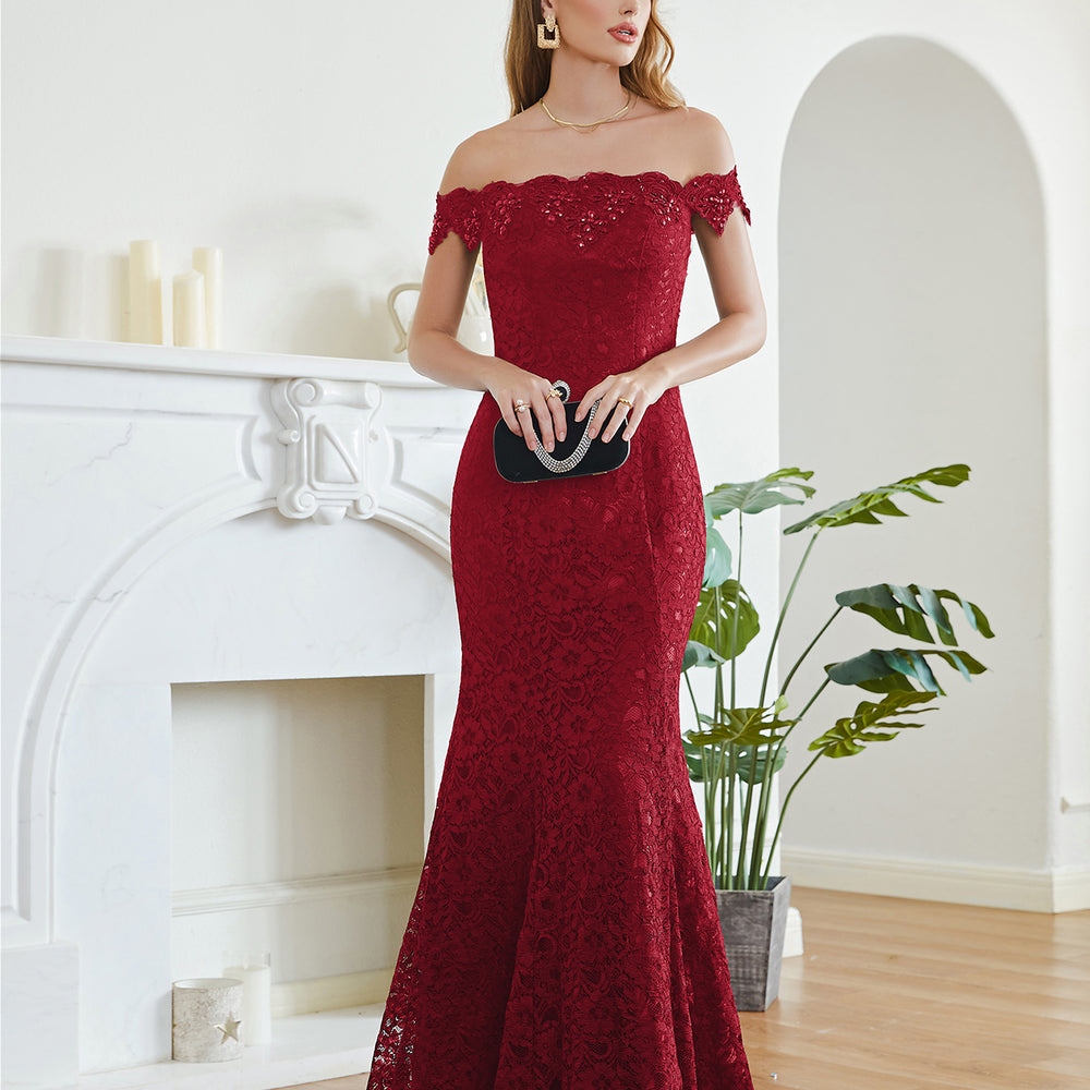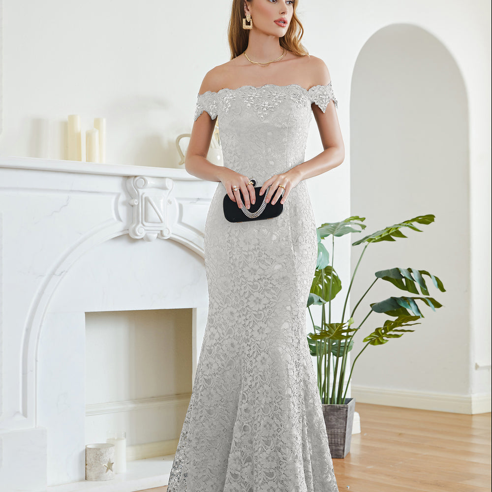 Long Off the Shoulder Lace Floor Length Mermaid Evening Dresses