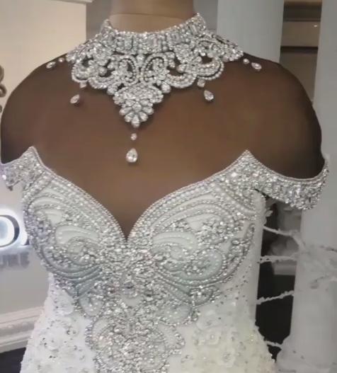 Long Mermaid Off-the-Shoulder Appliques Crystals Wedding Dress