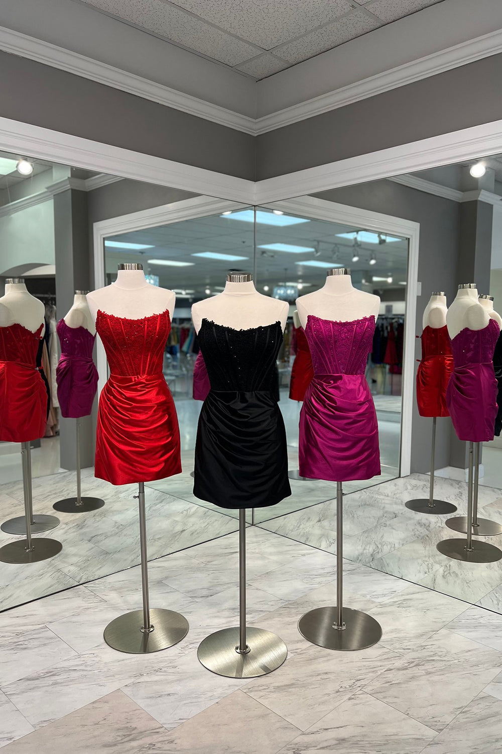 Dark Green Detachable Long Sleeves Satin Corset Tight Short Homecoming Dress (Gloves not Included)