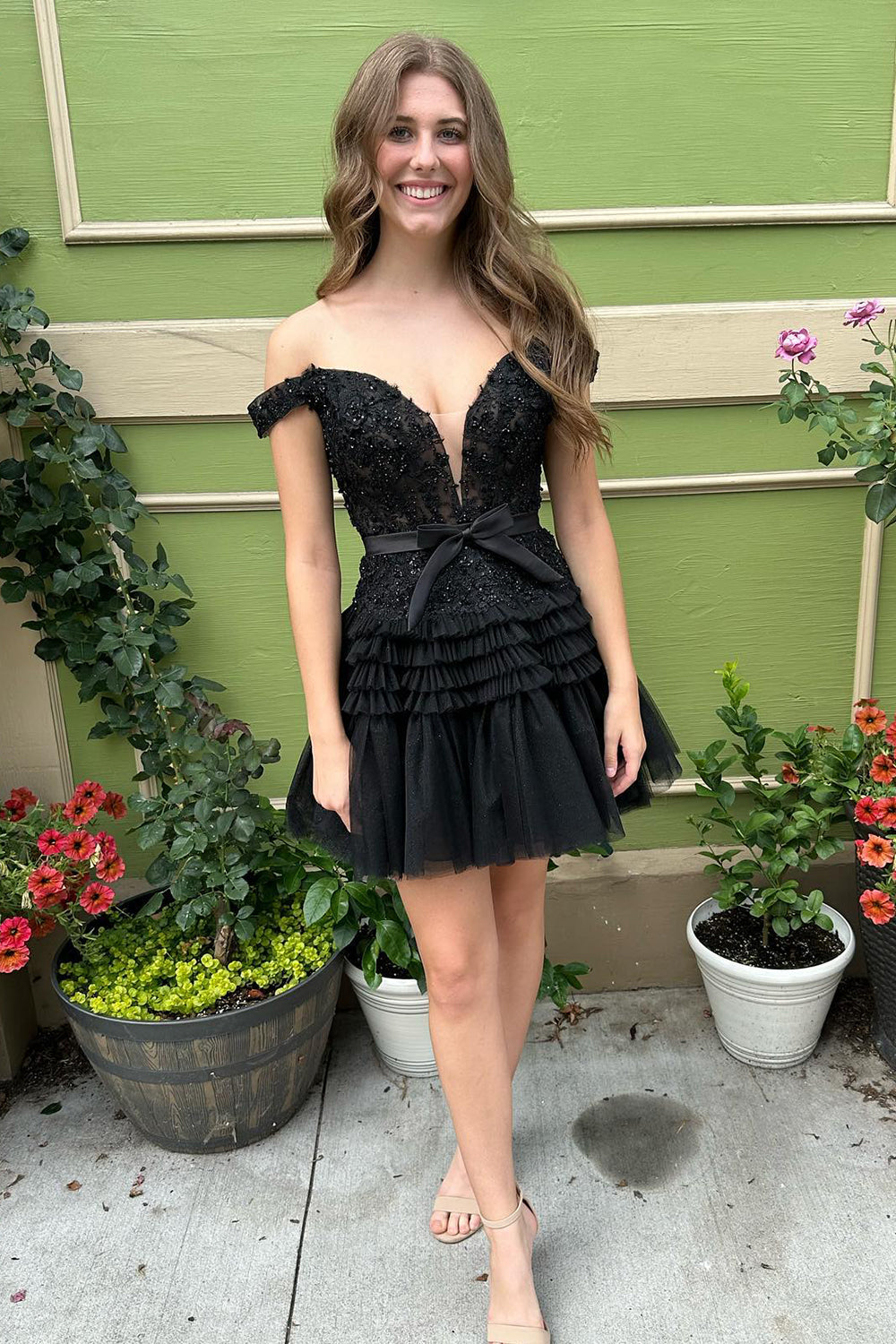 Sparkly Fuchsia Tiered A-Line Tulle Short Homecoming Dress with Lace