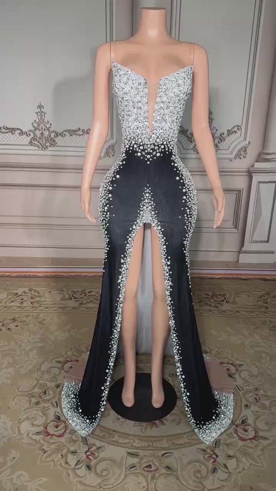 Velvet V-Neck Sleeveless Ball Gown Prom Dress with Diamonds is designed for elegance and impact. The rich velvet fabric pairs beautifully with a deep V-neckline and sparkling diamond details, creating a look that’s both regal and timeless.