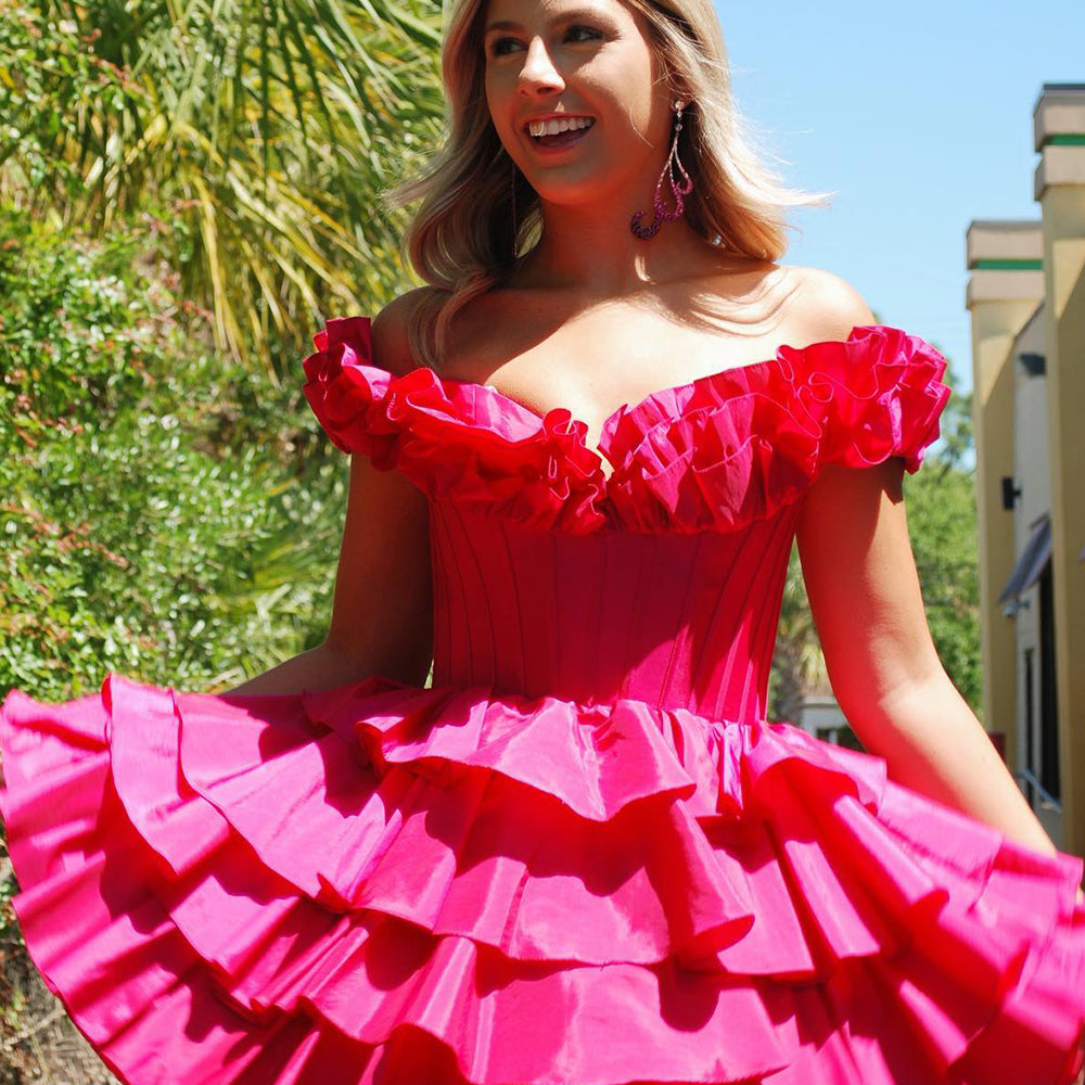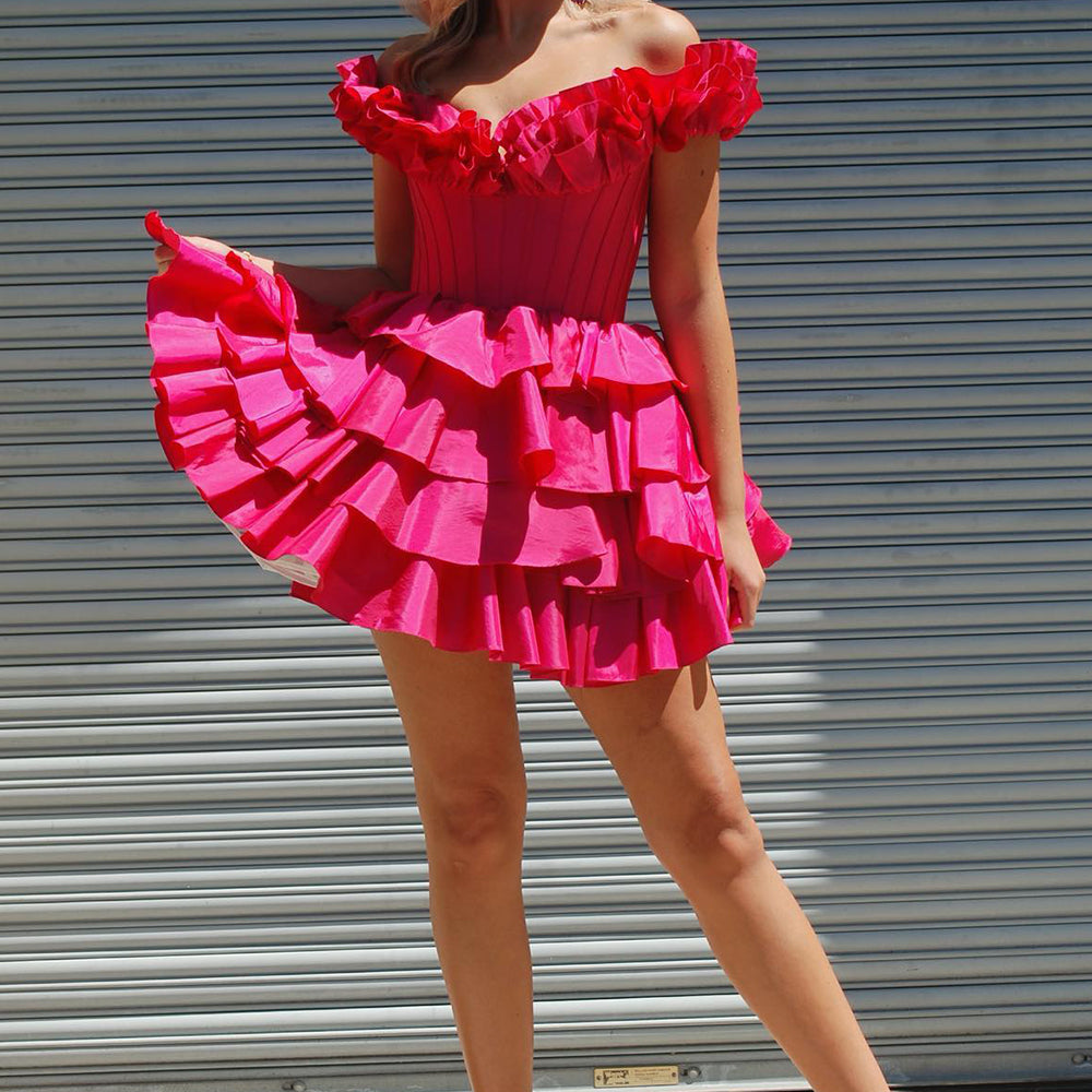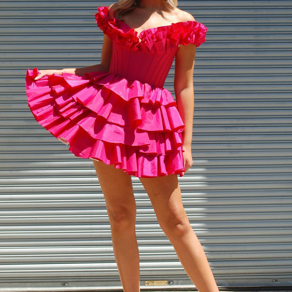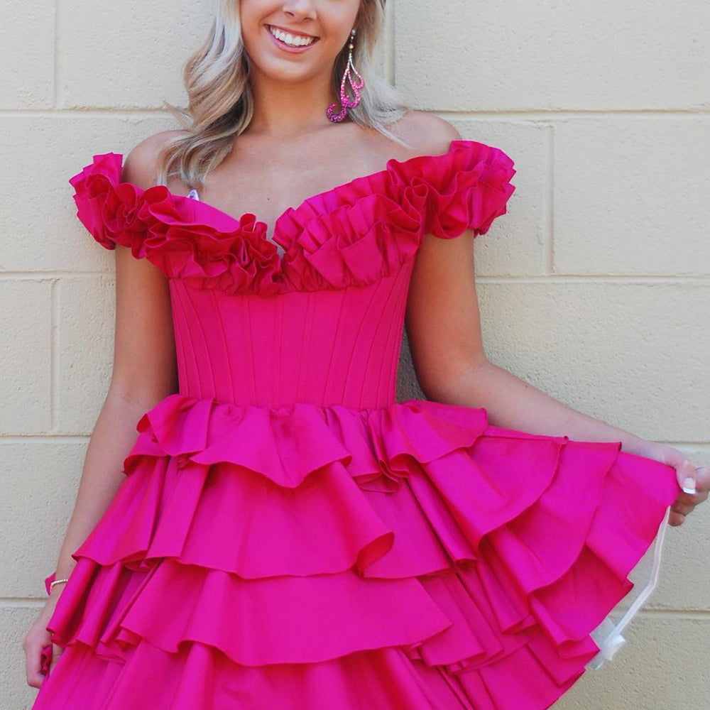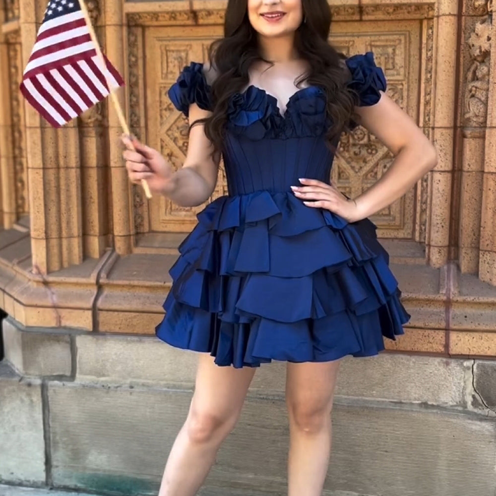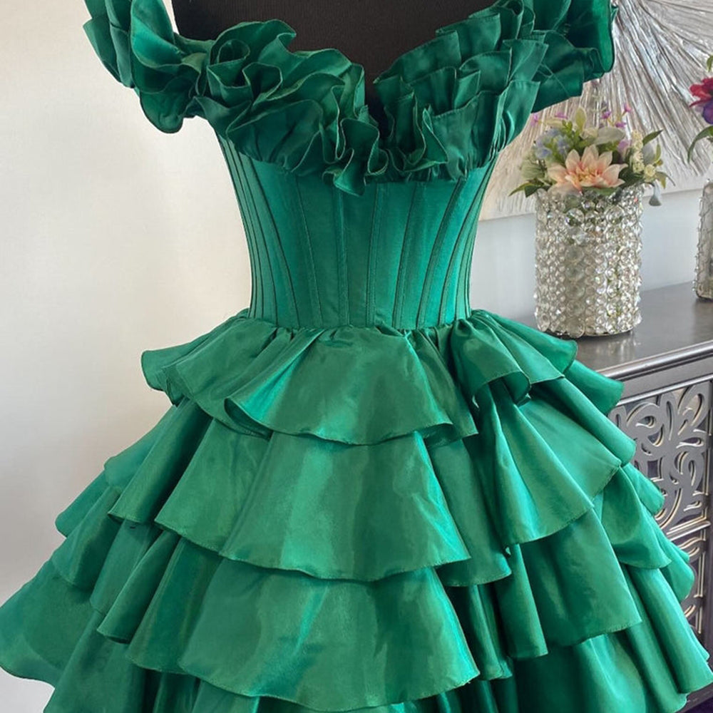 A -Line Off The Shoulder Golden Corset Short Homecoming Dress with Ruffles