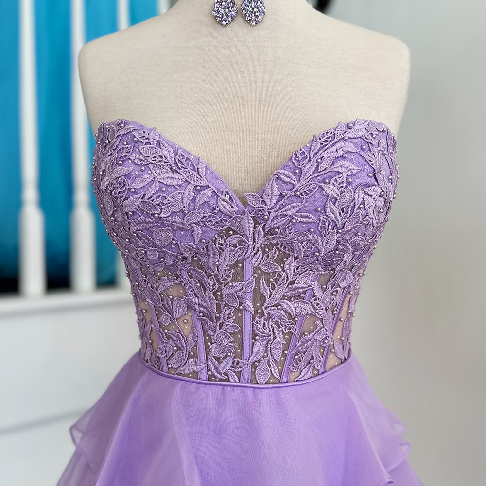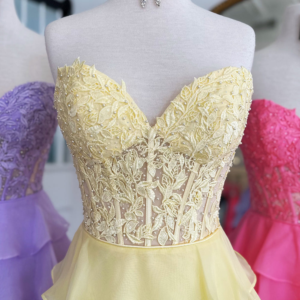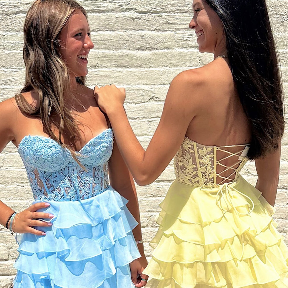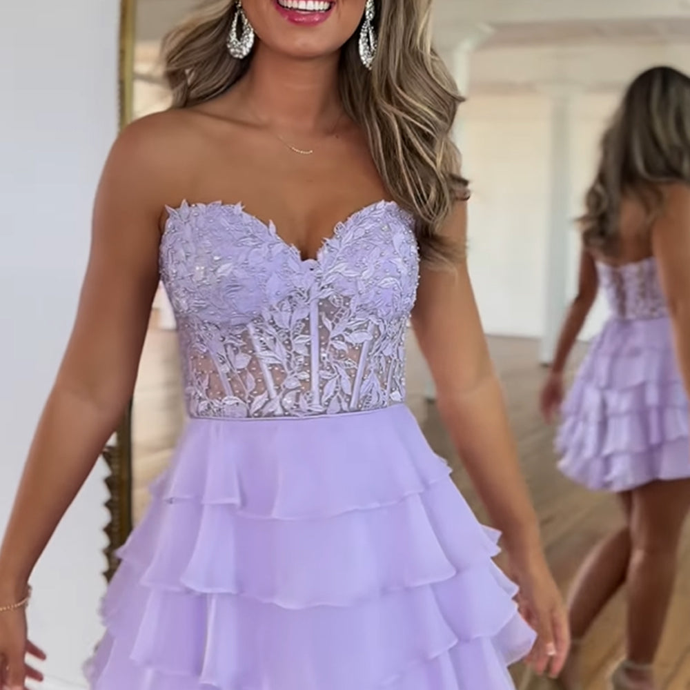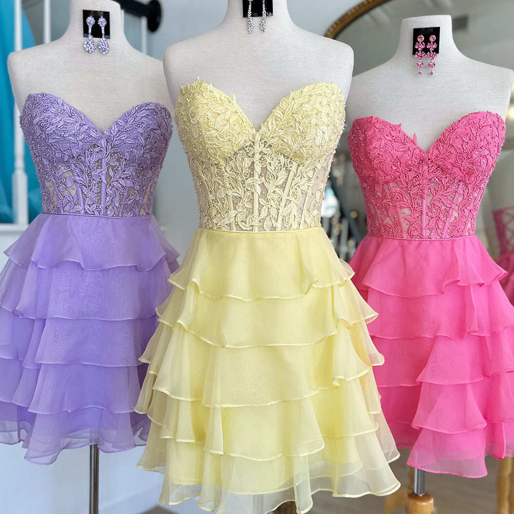 Sparkly A Line Pink Strapless Corset Short Homecoming Dress with Ruffles