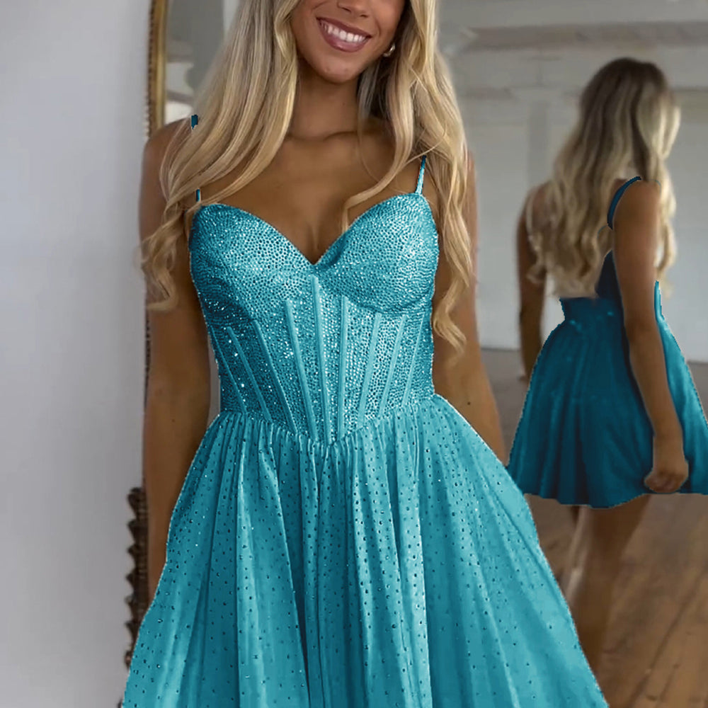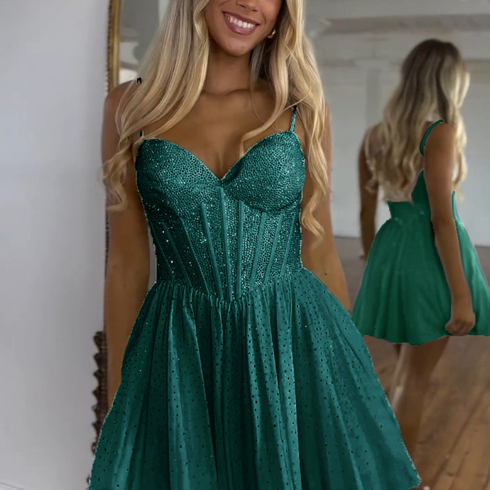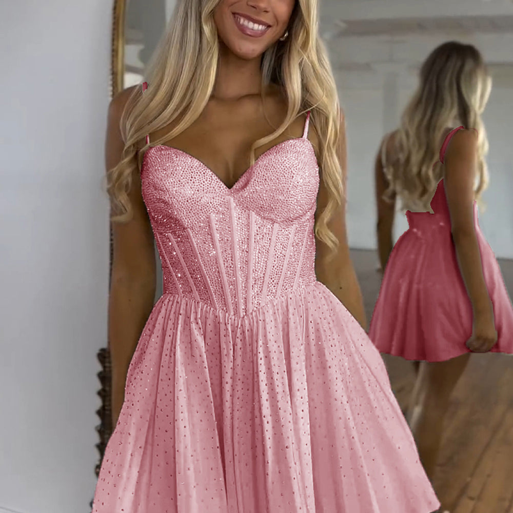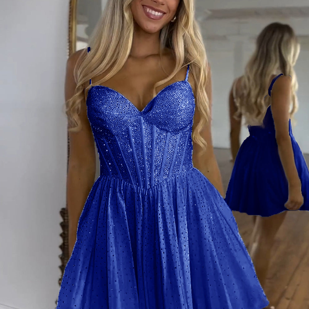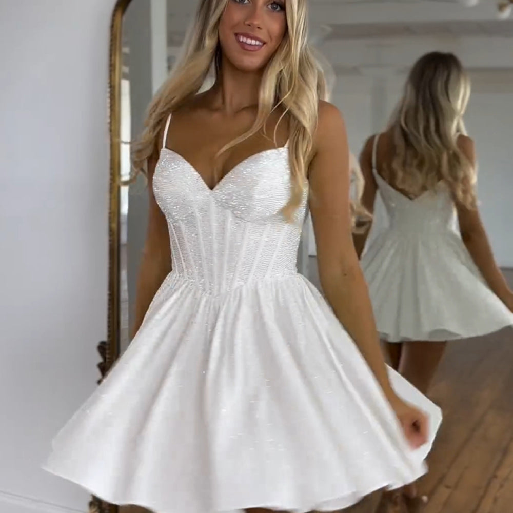 Sparkly A Line White Beaded Corset Short Homecoming Dress
