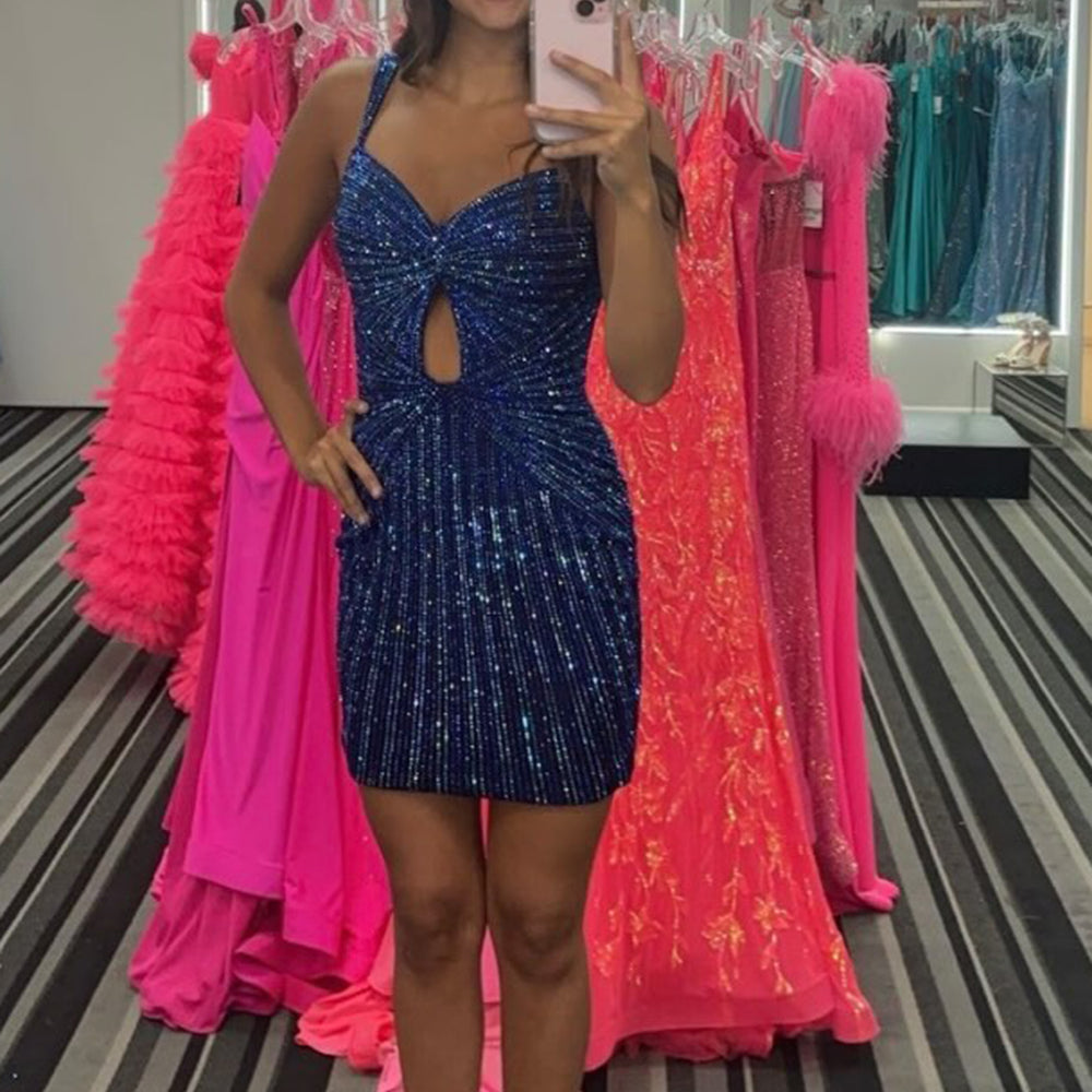 Sparkly Beaded Black Tight Short Homecoming Dress