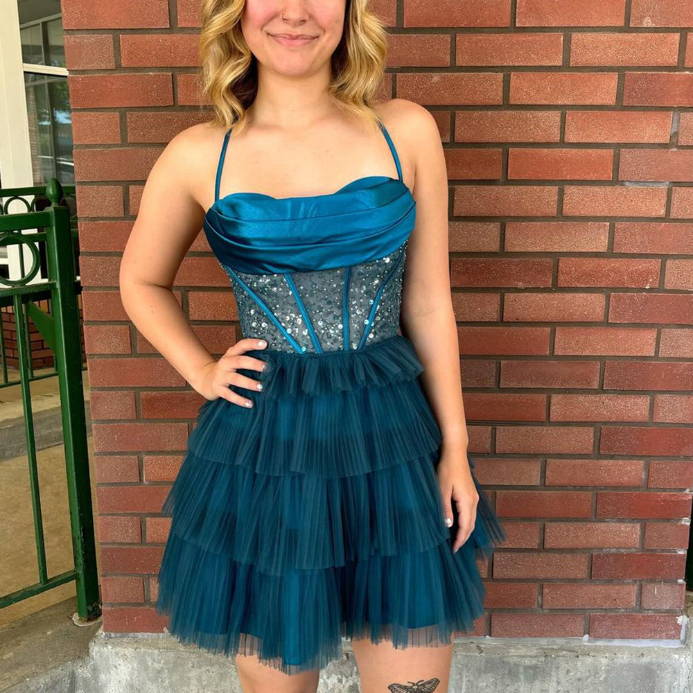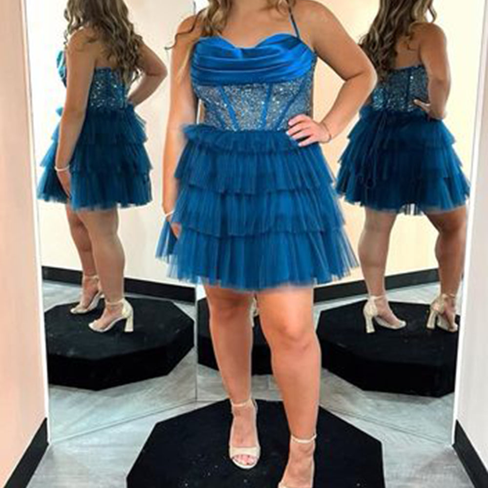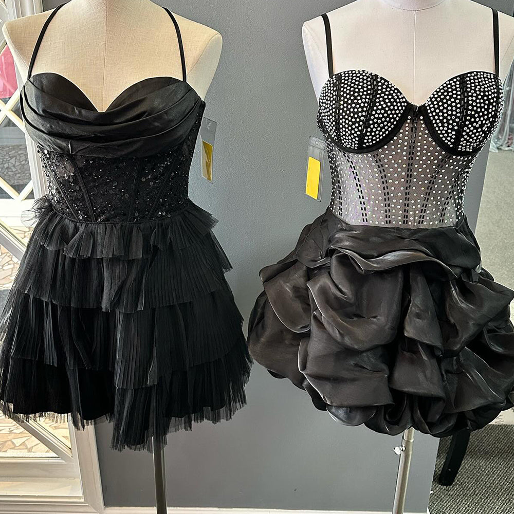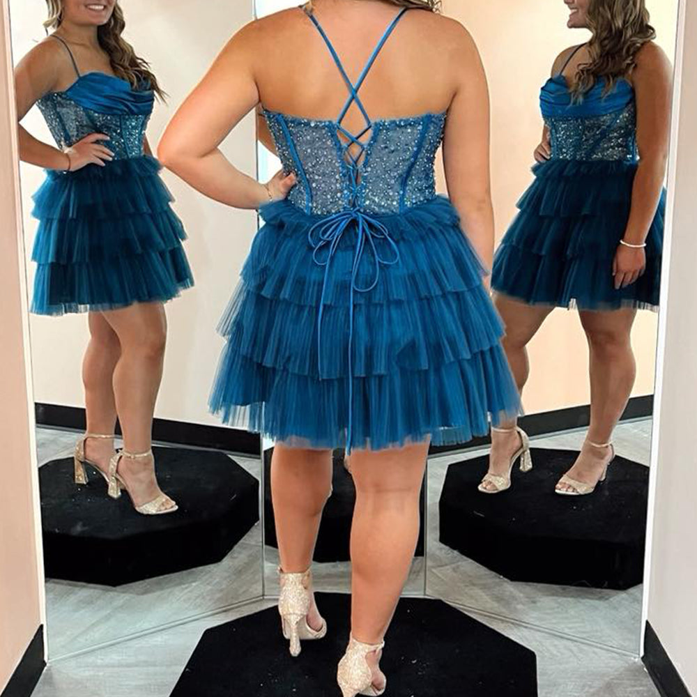 Sparkly Black Spaghetti Straps Corset Short Homecoming Dress