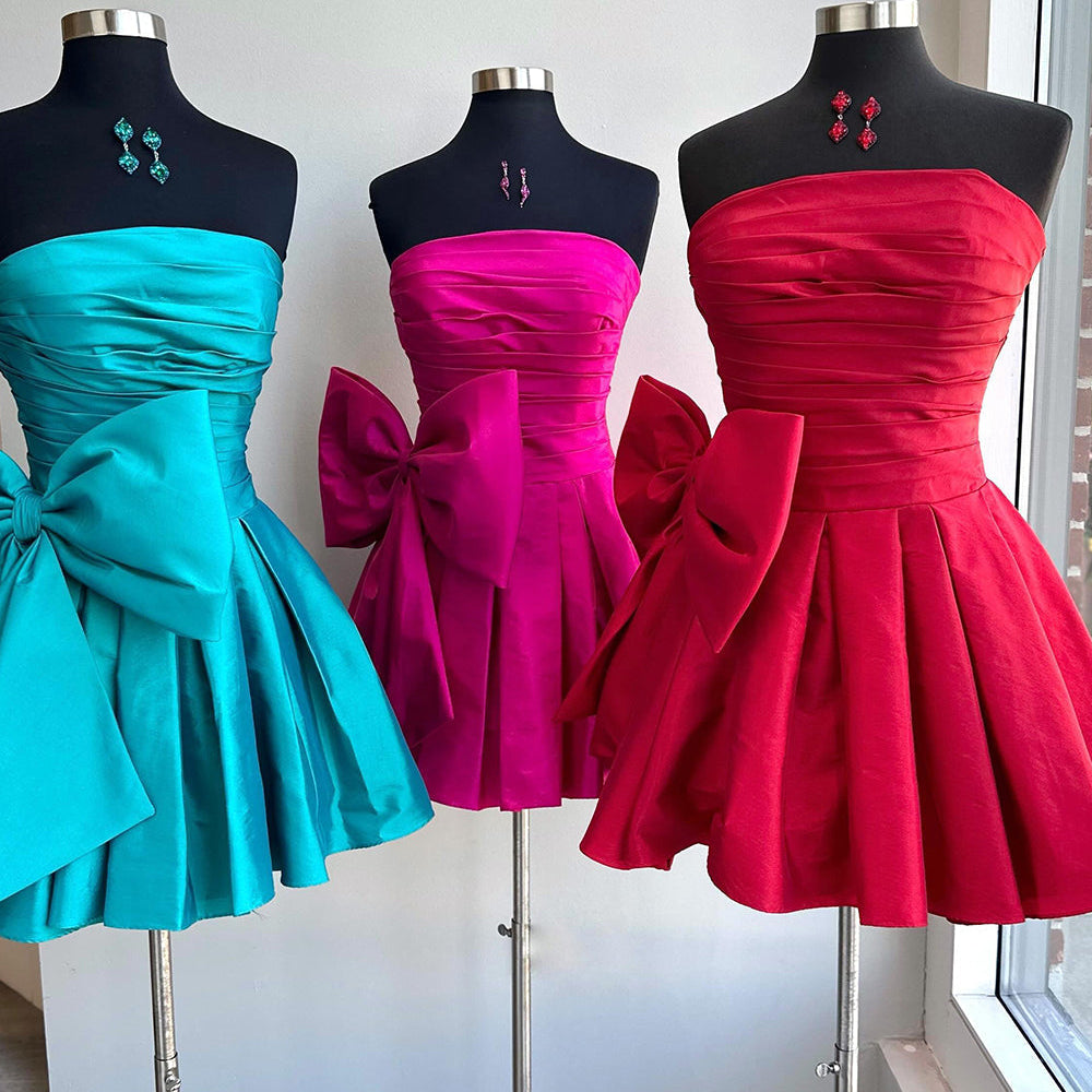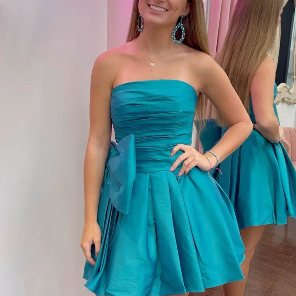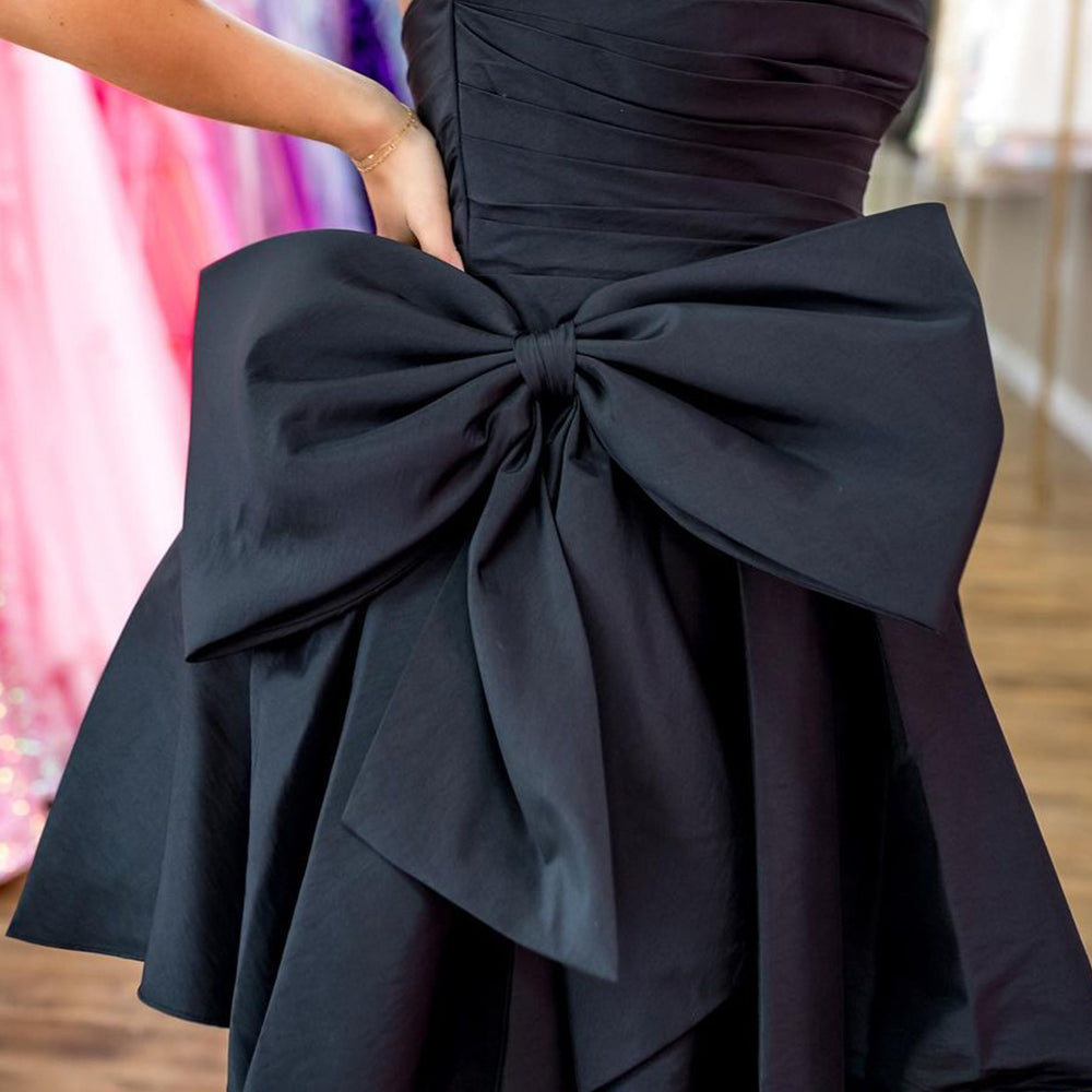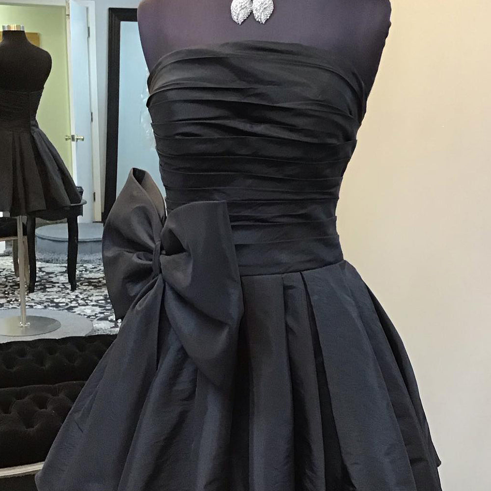Black Strapless A-Line Short Homecoming Dress with Bowknot