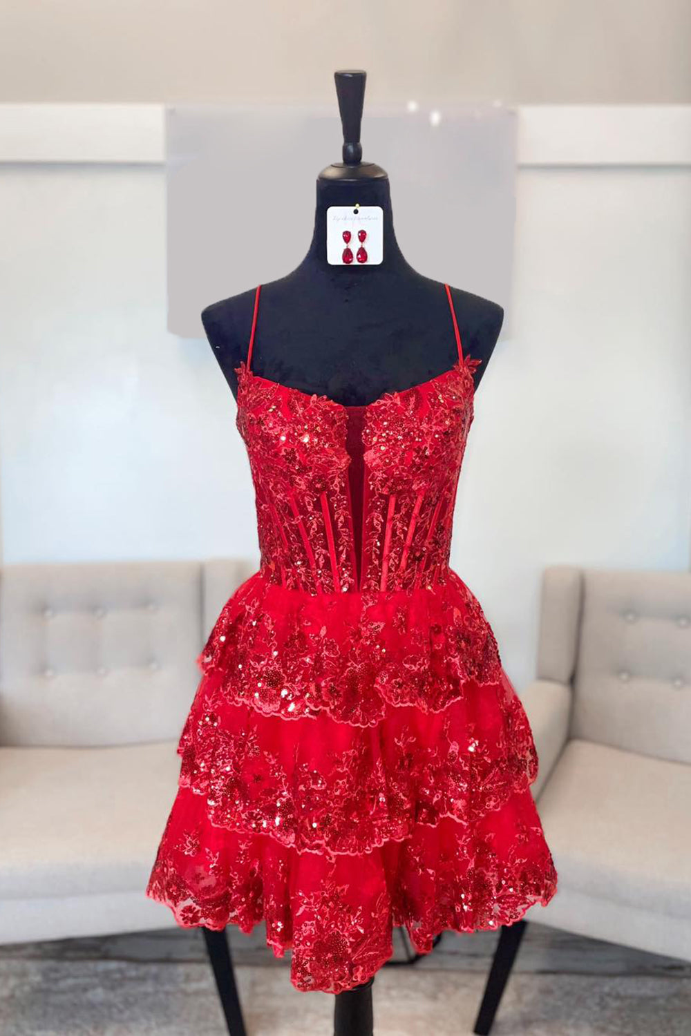 Sparkly Blue A Line Corset Tiered Short Homecoming Dress
