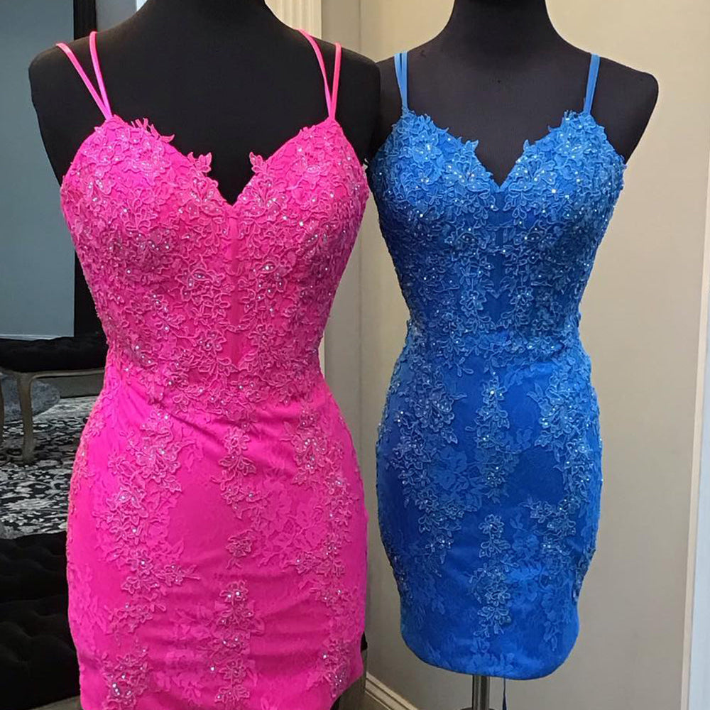 Sparkly Blue Spaghetti Straps Corset Lace Tight Short Homecoming Dress
