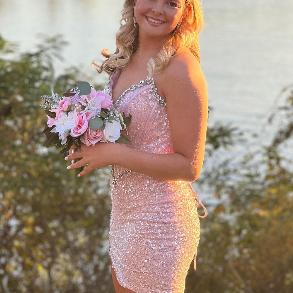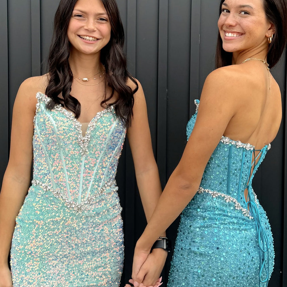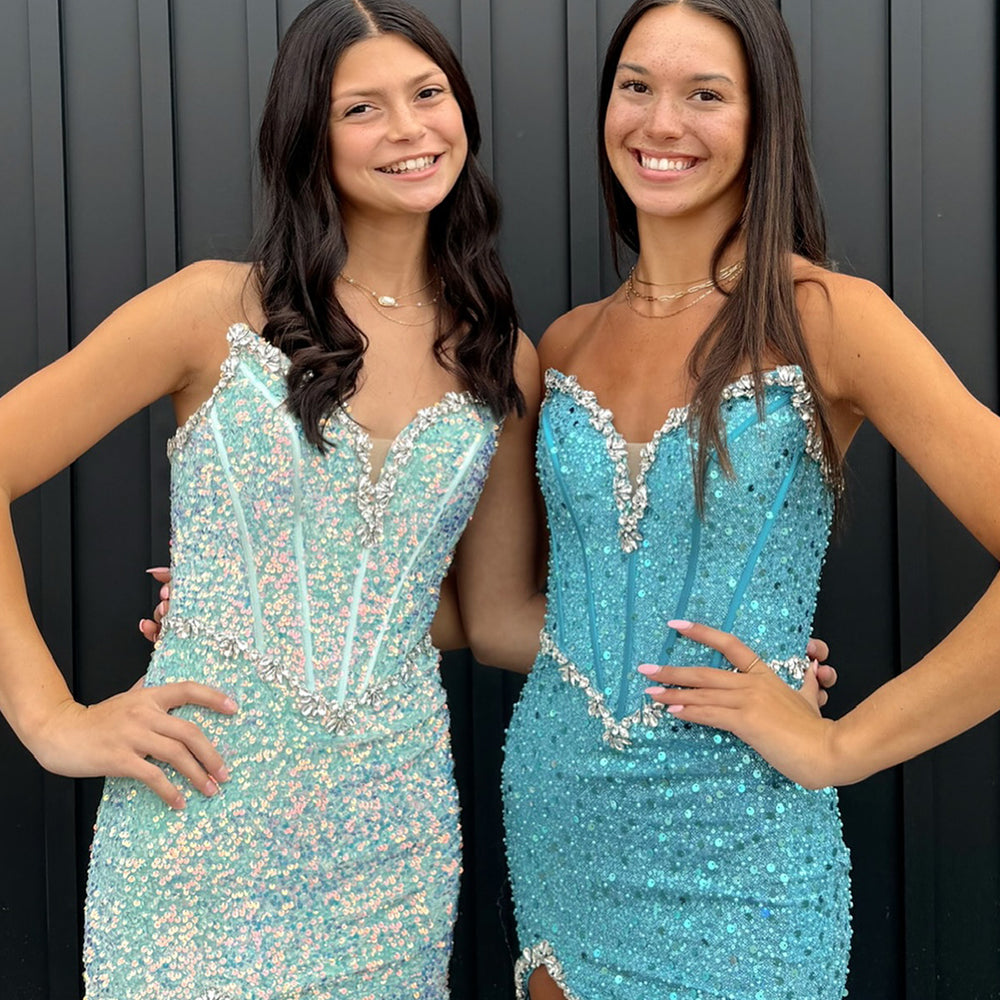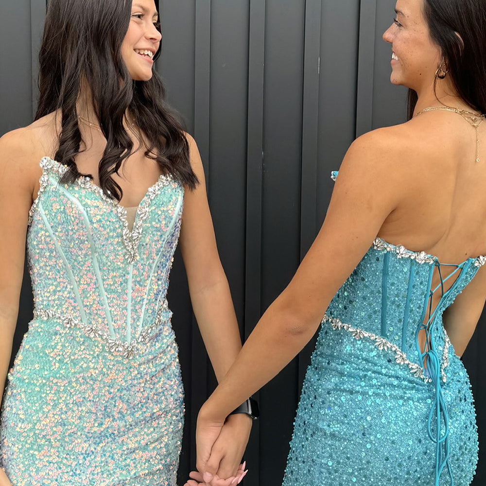 Sparkly Blush Strapless Corset Tight Short Homecoming Dress