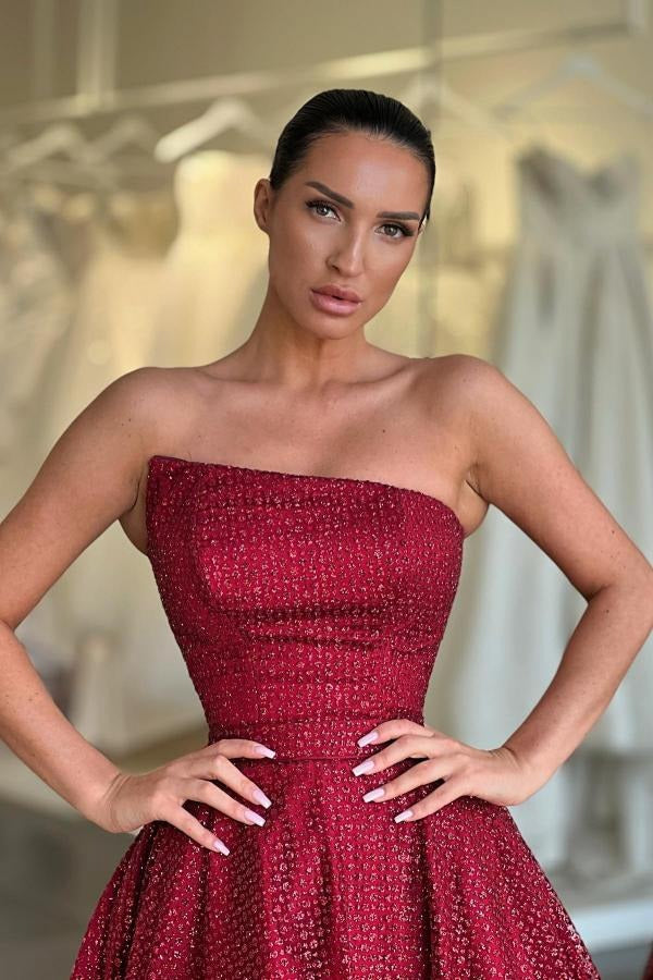 Burgundy Short A-line Strapless Cocktail Party Dresses