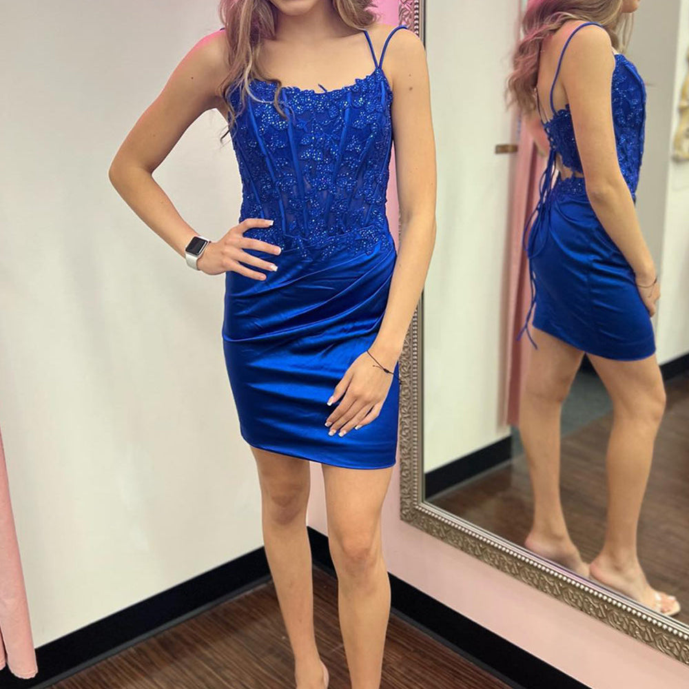 Sparkly Corset Dark Spaghetti Straps Green Tight Short Homecoming Dress with Lace