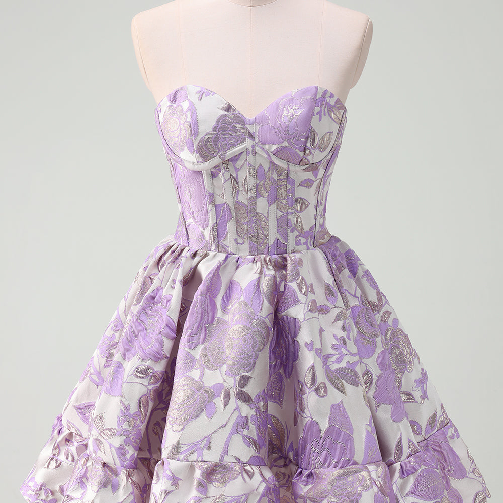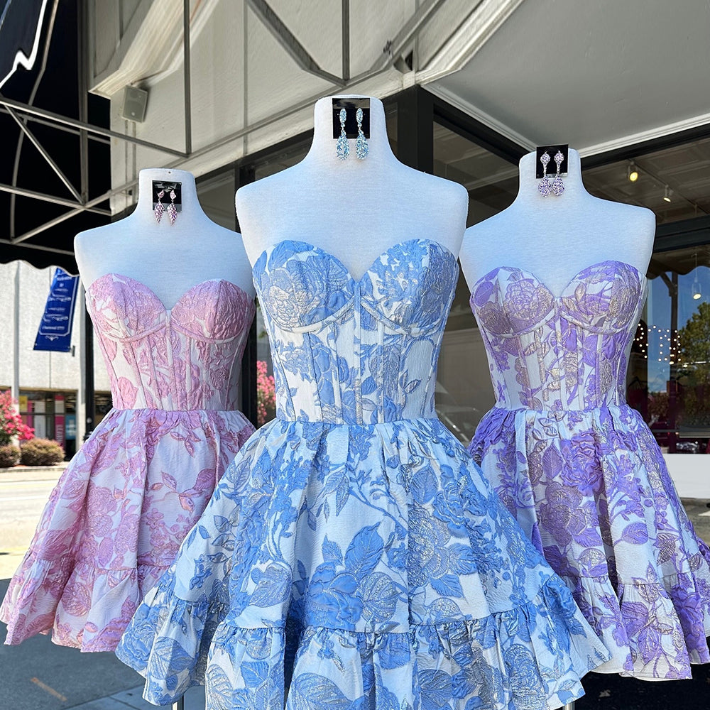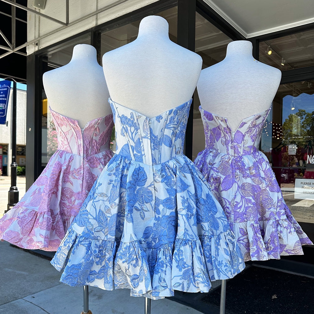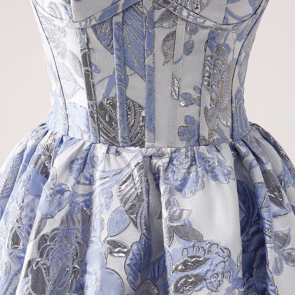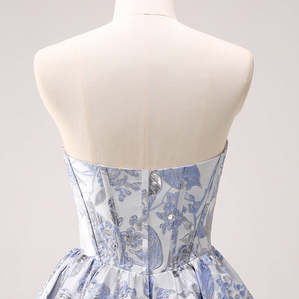 Fluffy Blue Floral Corset Strapless A Line Short Homecoming Dress