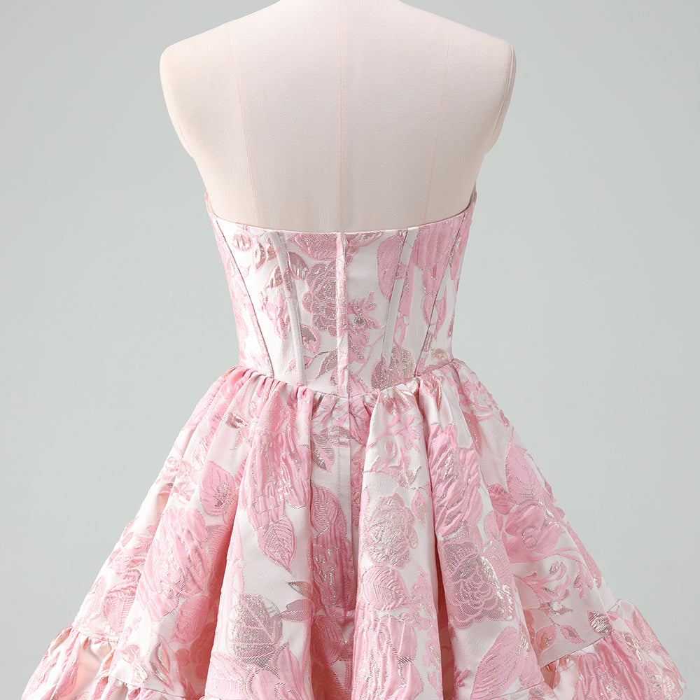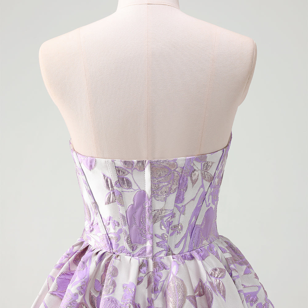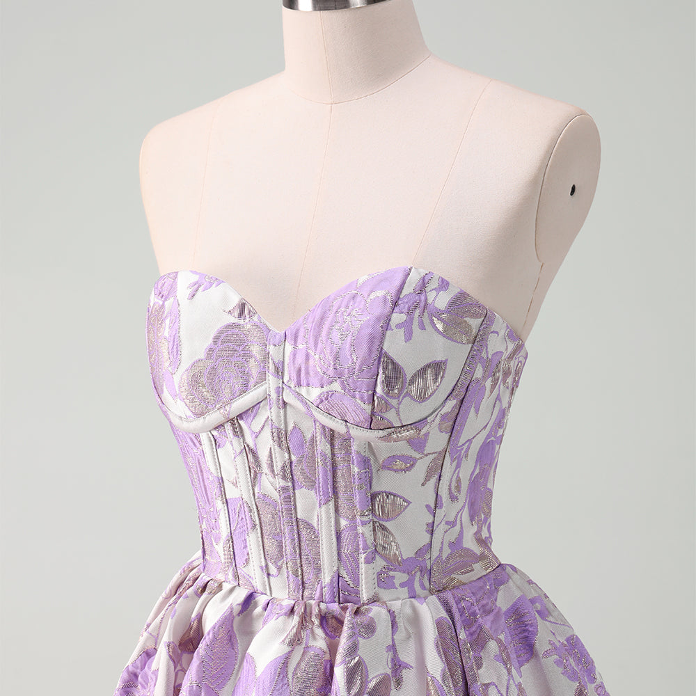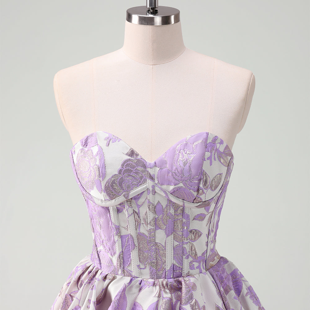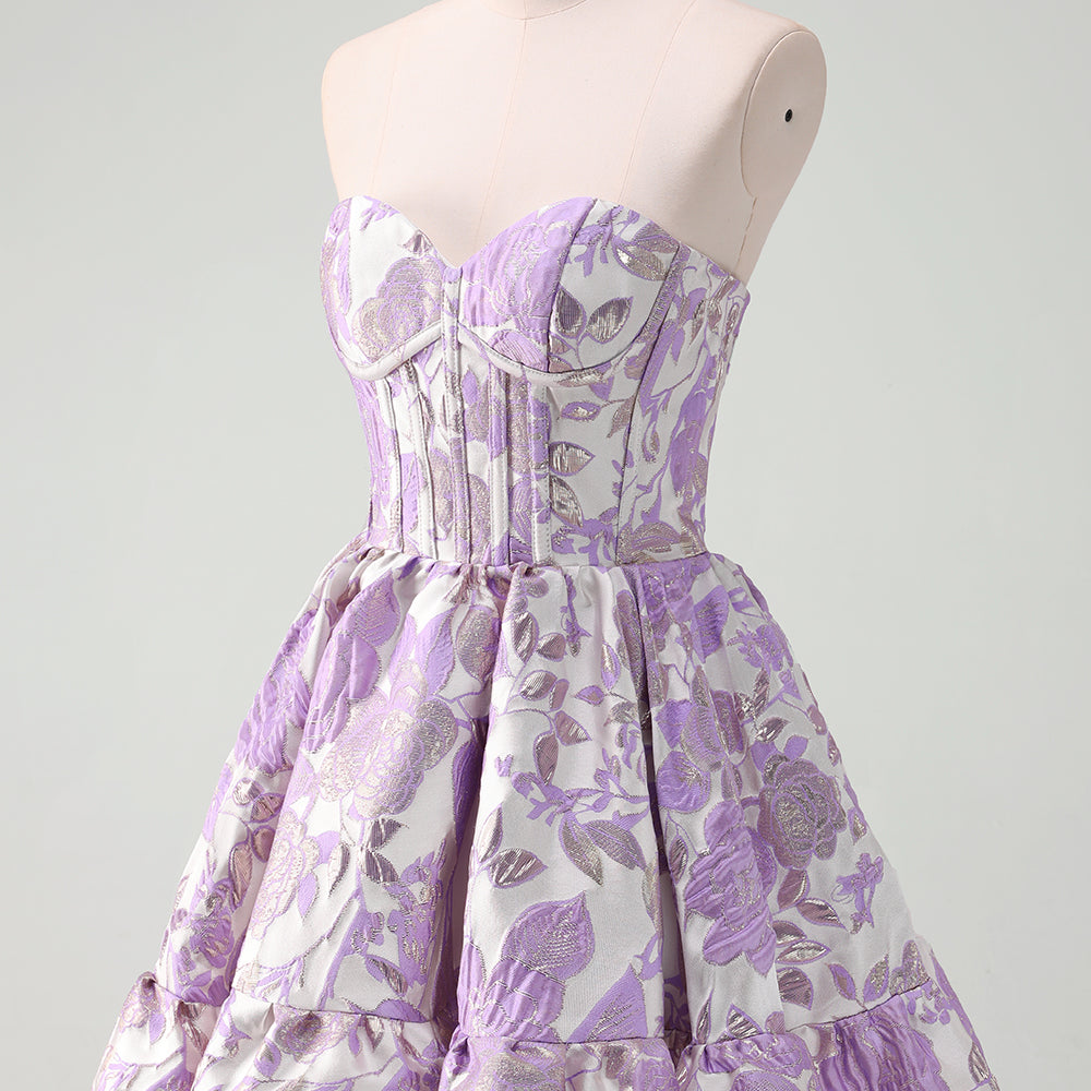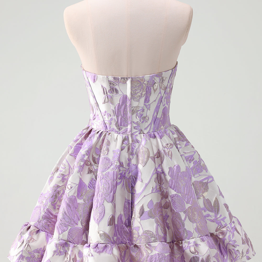 Fluffy Blue Floral Corset Strapless A Line Short Homecoming Dress