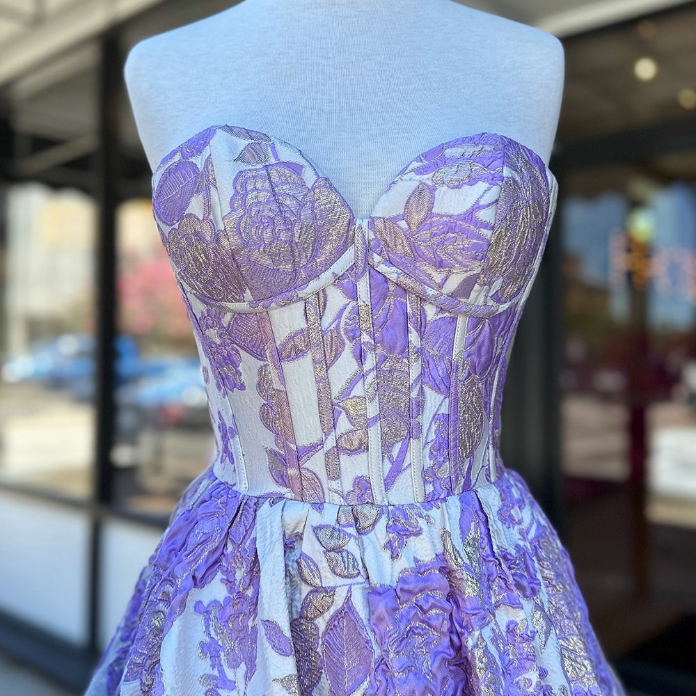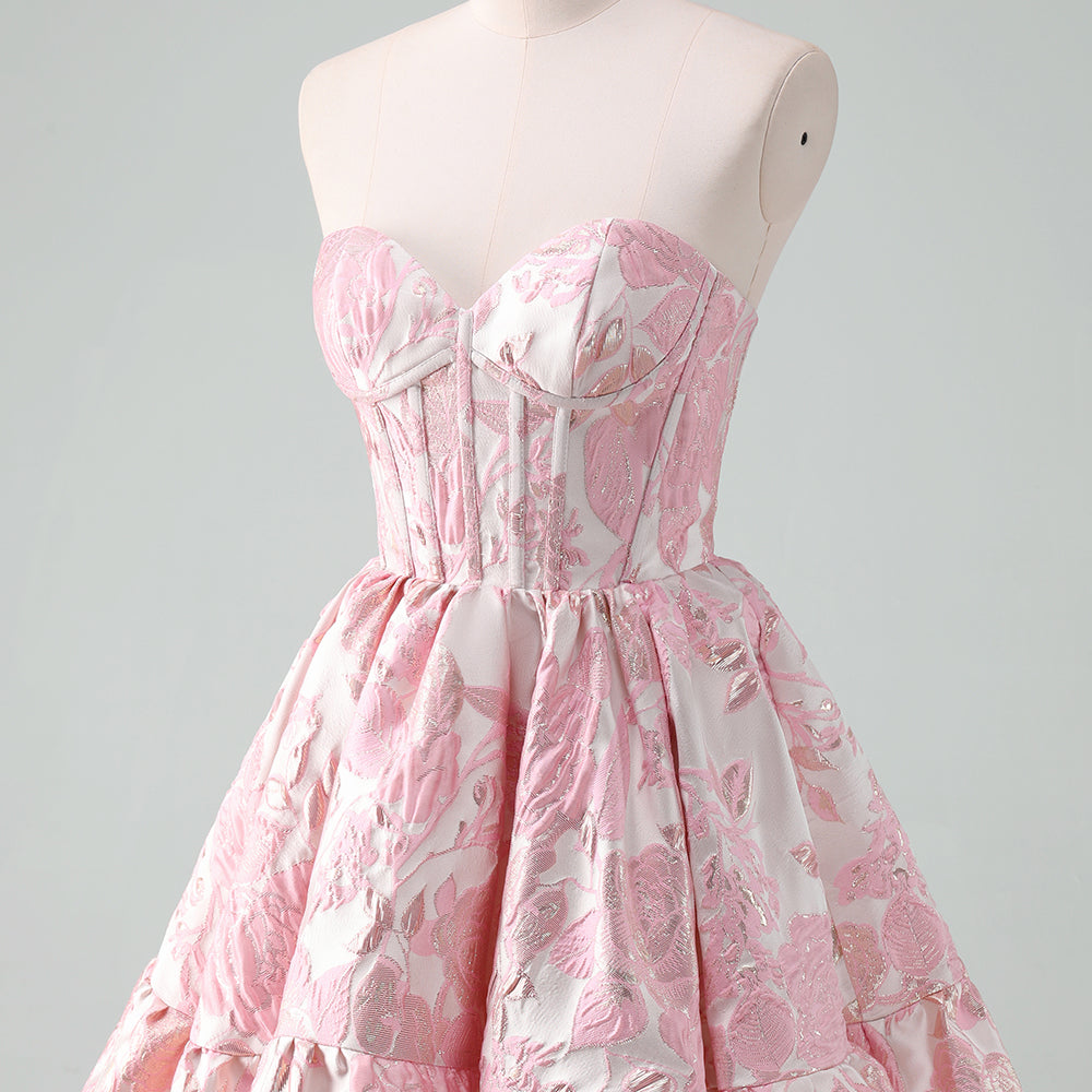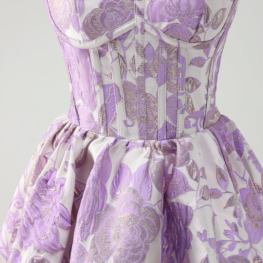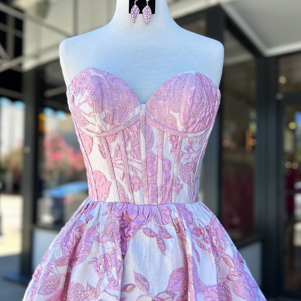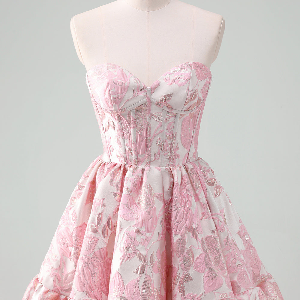 Fluffy Blue Floral Corset Strapless A Line Short Homecoming Dress