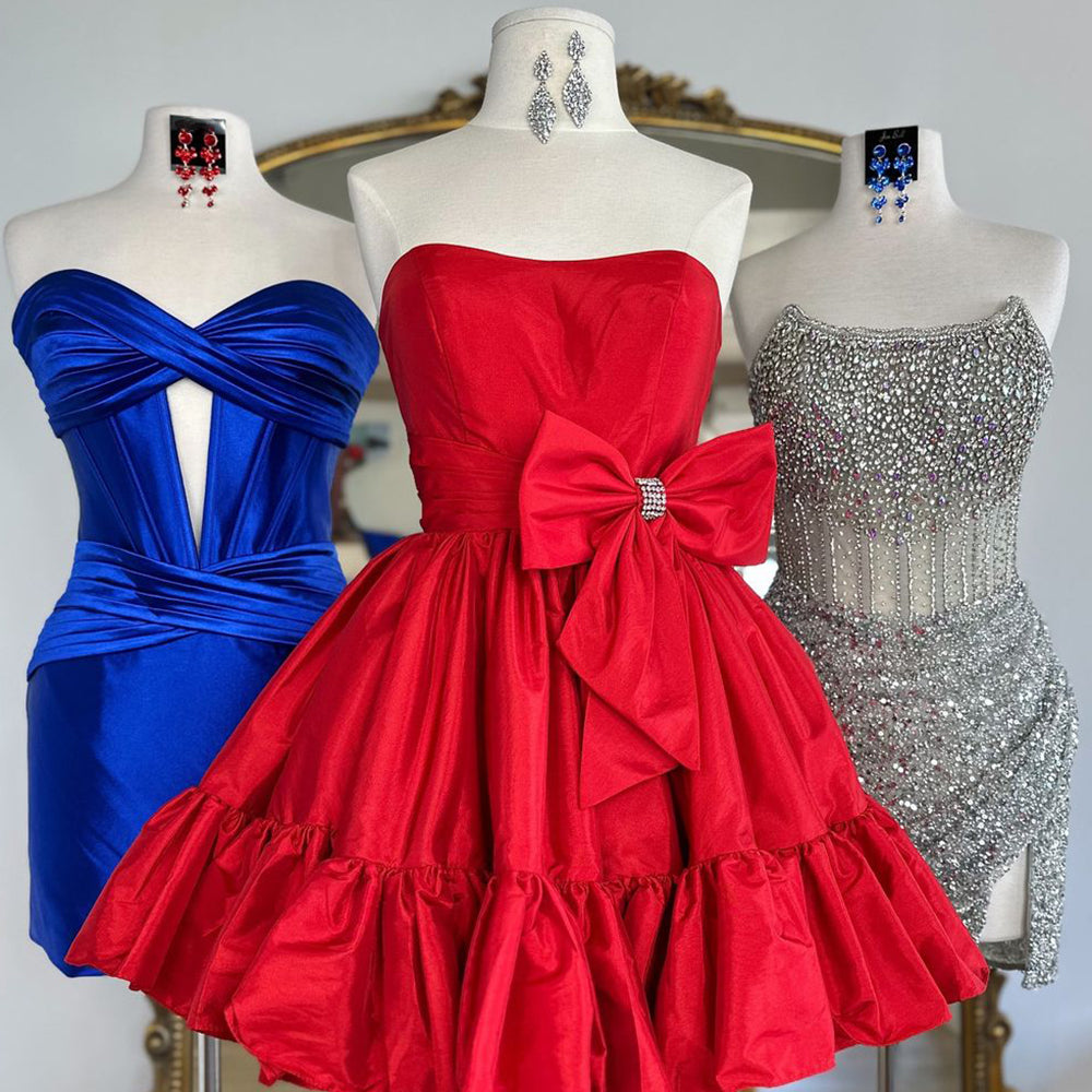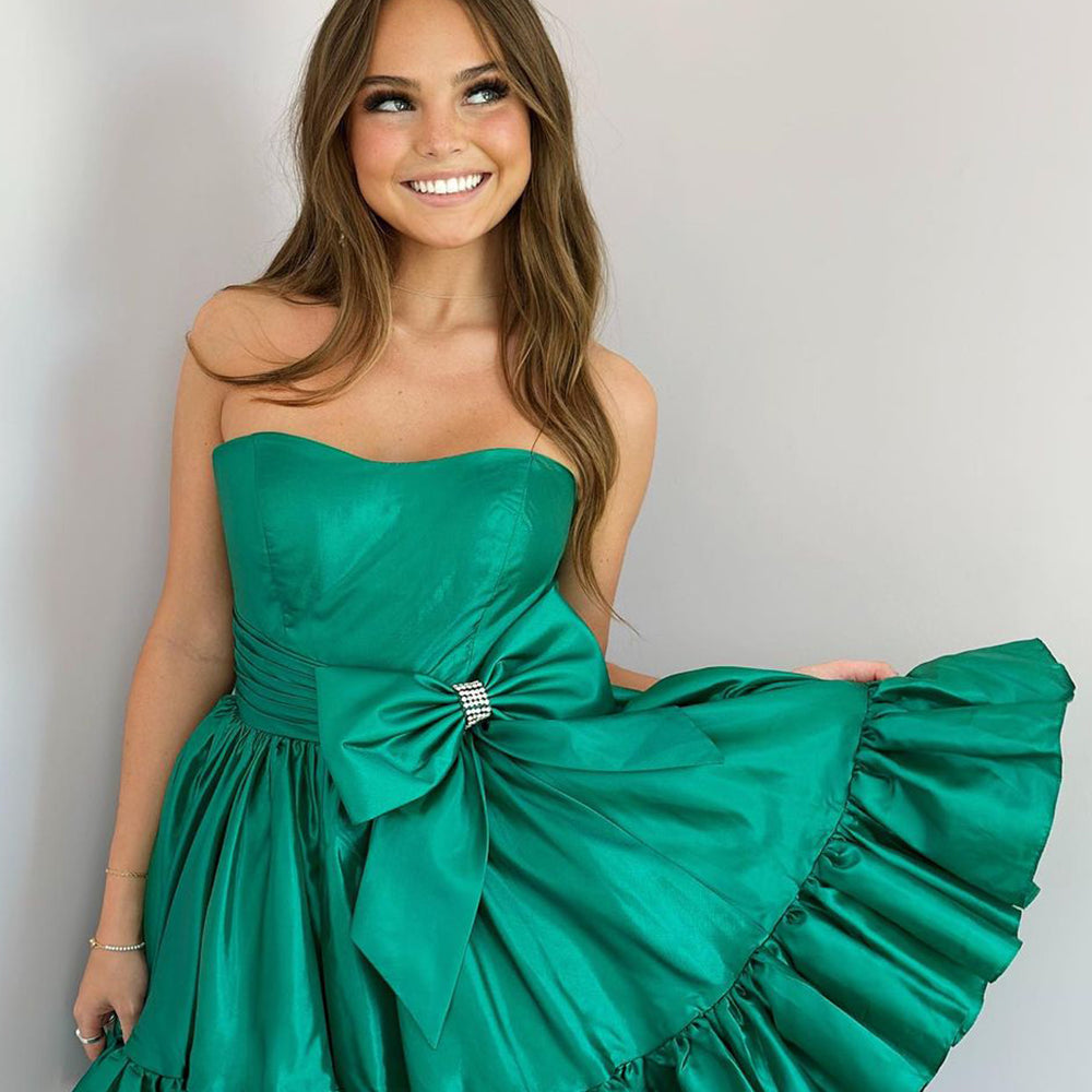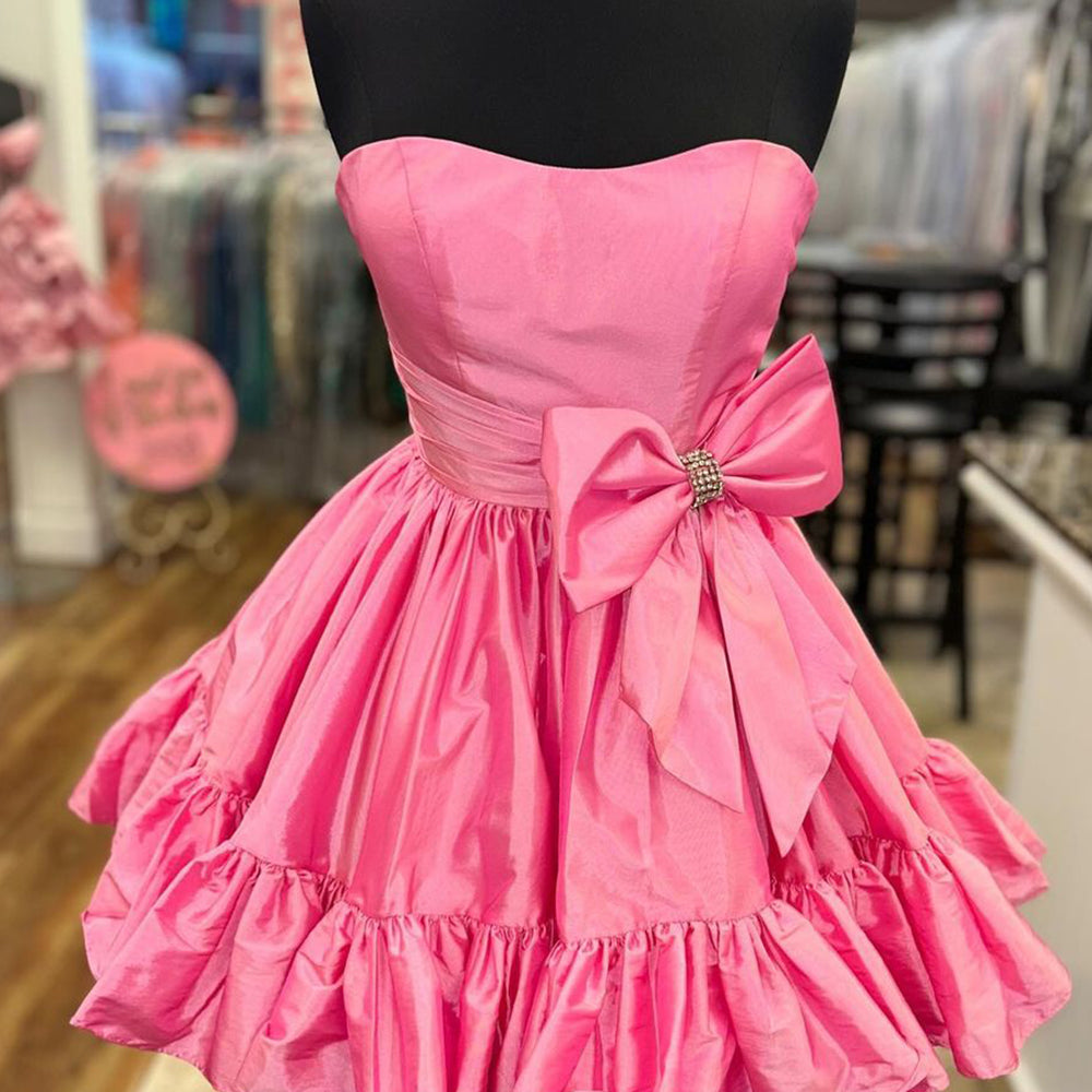 Fluffy Fuchsia Strapless A Line Tiered Short Homecoming Dress with Bow