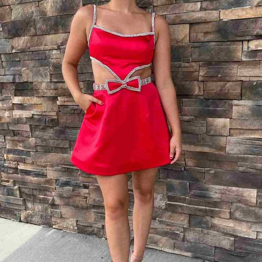 Sparkly Fuchsia A-Line Short Beaded Homecoming Dress with Bows