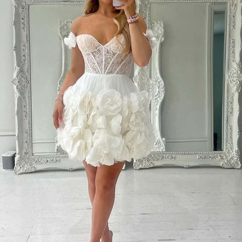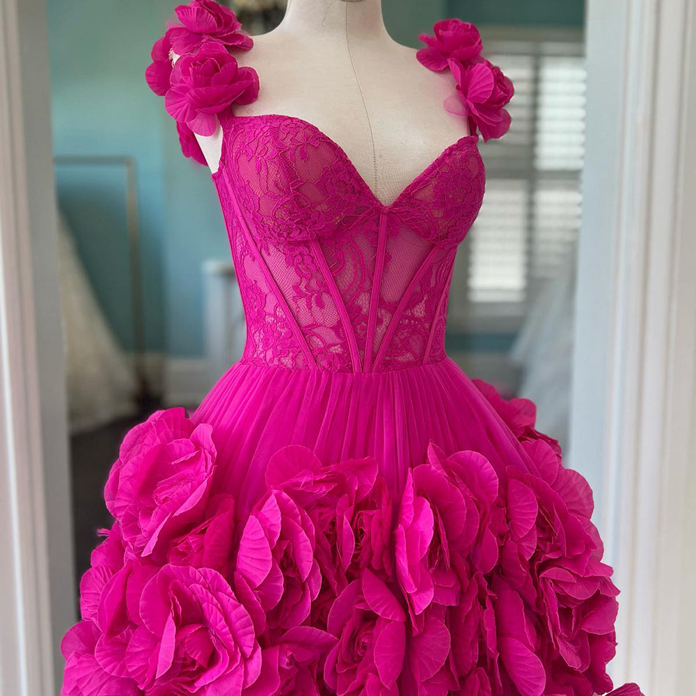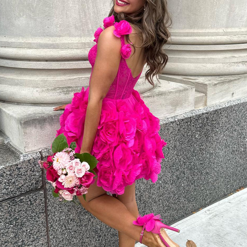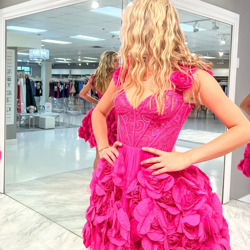 Fuchsia Corset Floral Ruffled Short Homecoming Dress with Lace