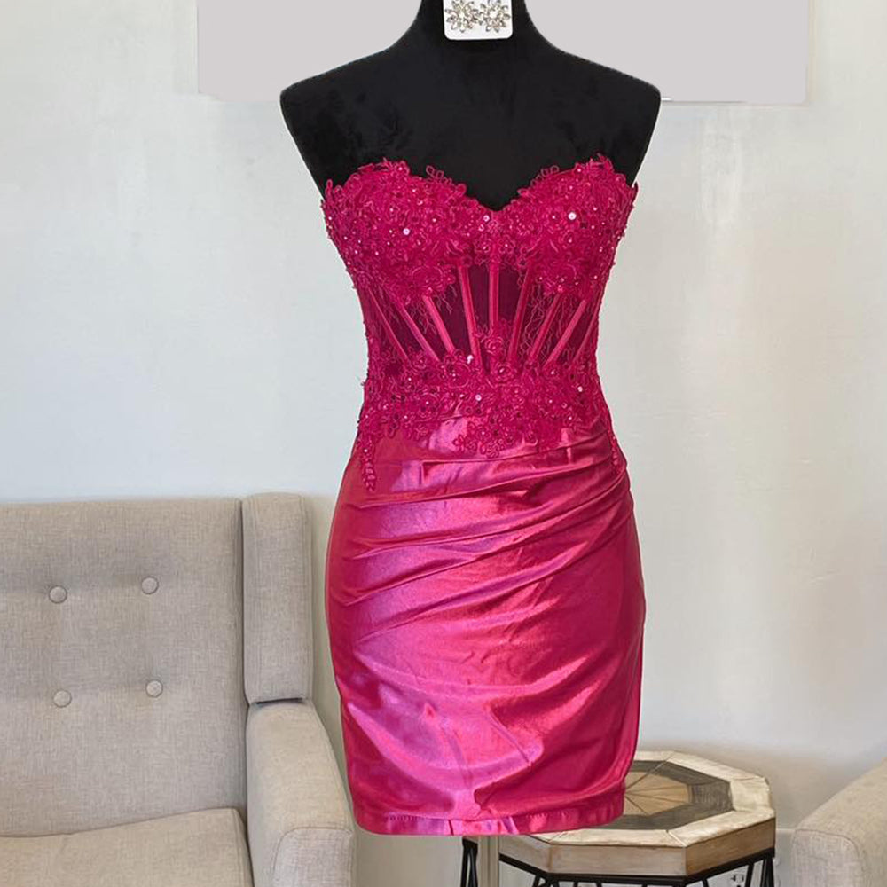 Fuchsia Strapless Tight Corset Short Homecoming Dress with Lace