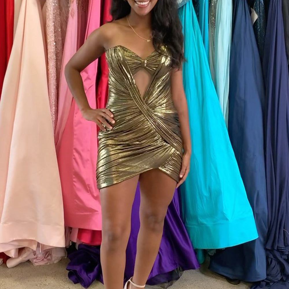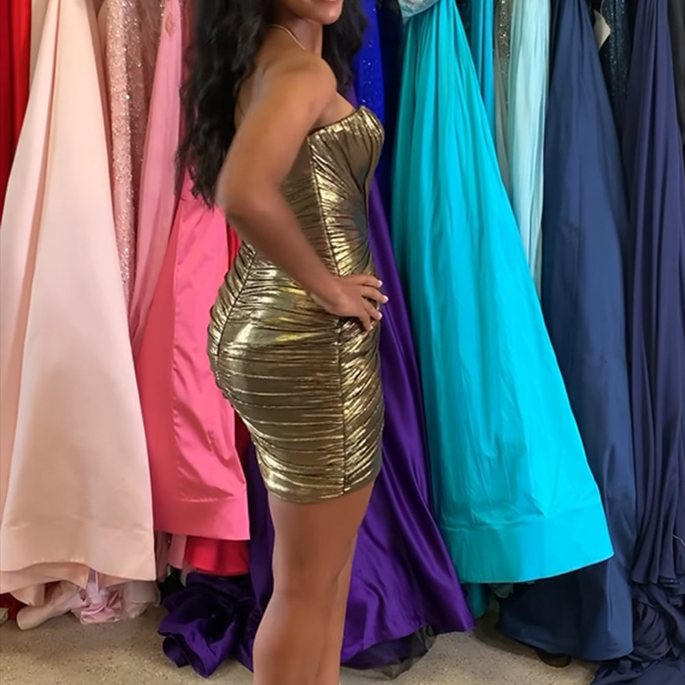 Fuchsia Strapless Tight Metallic Short Homecoming Dress with Keyhole