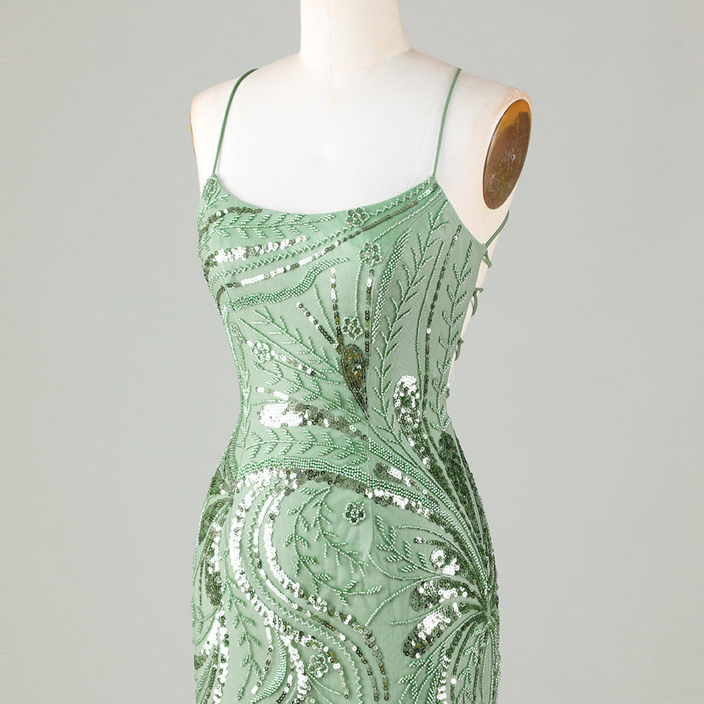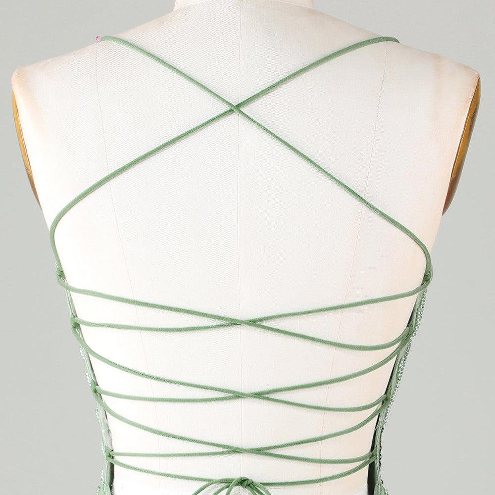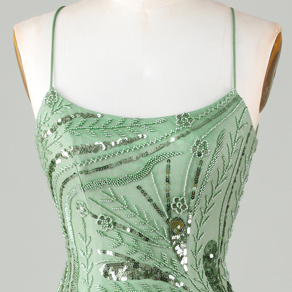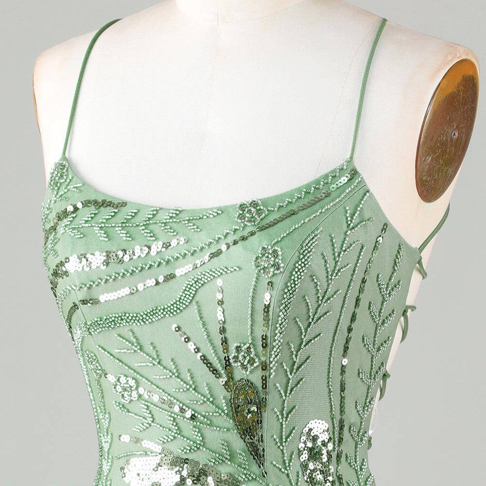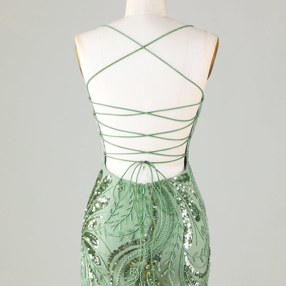 Glitter Green Sequins Tight Beaded Short Homecoming Dress