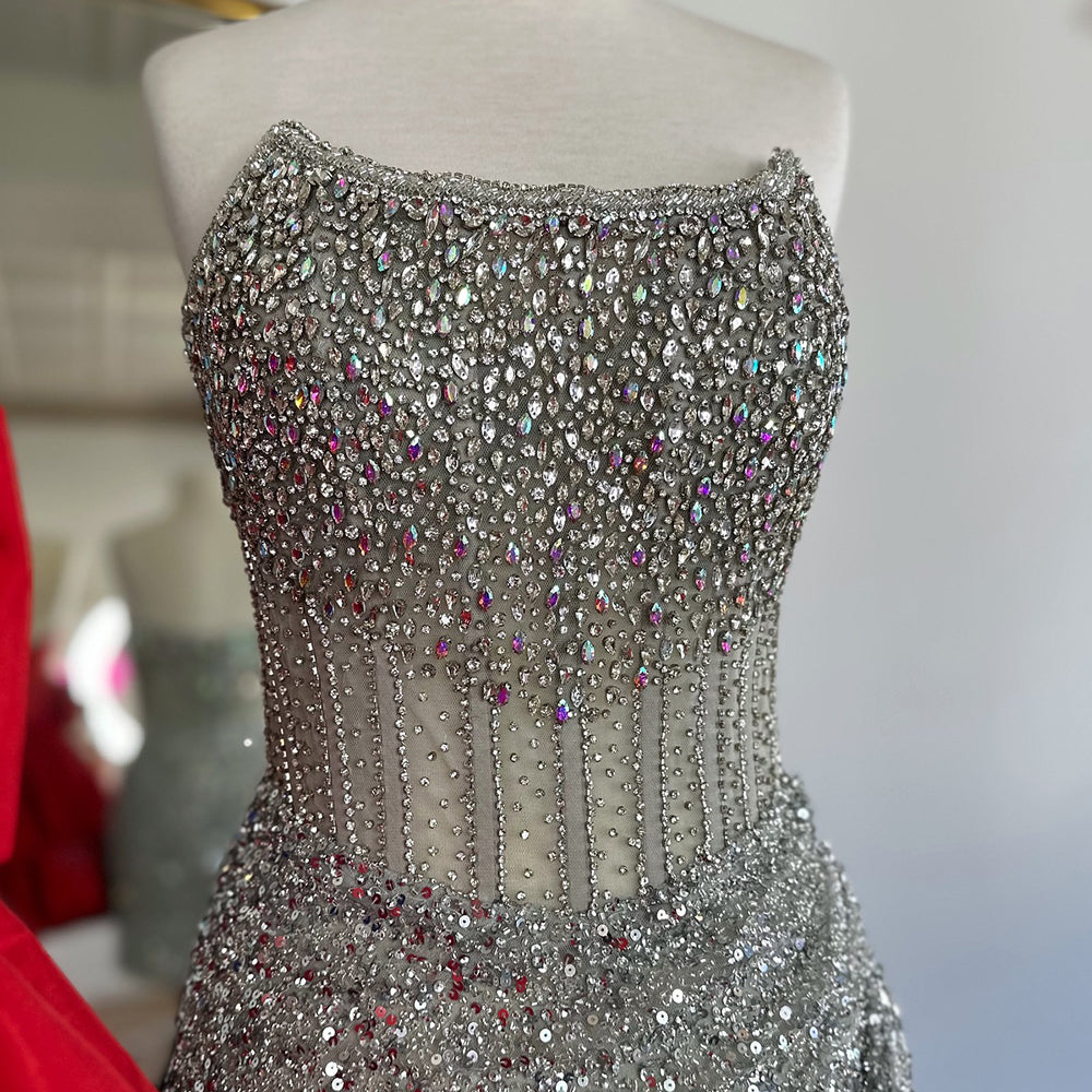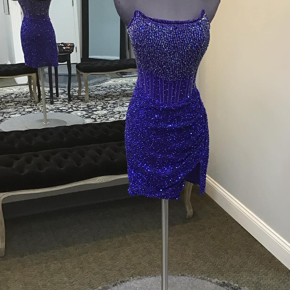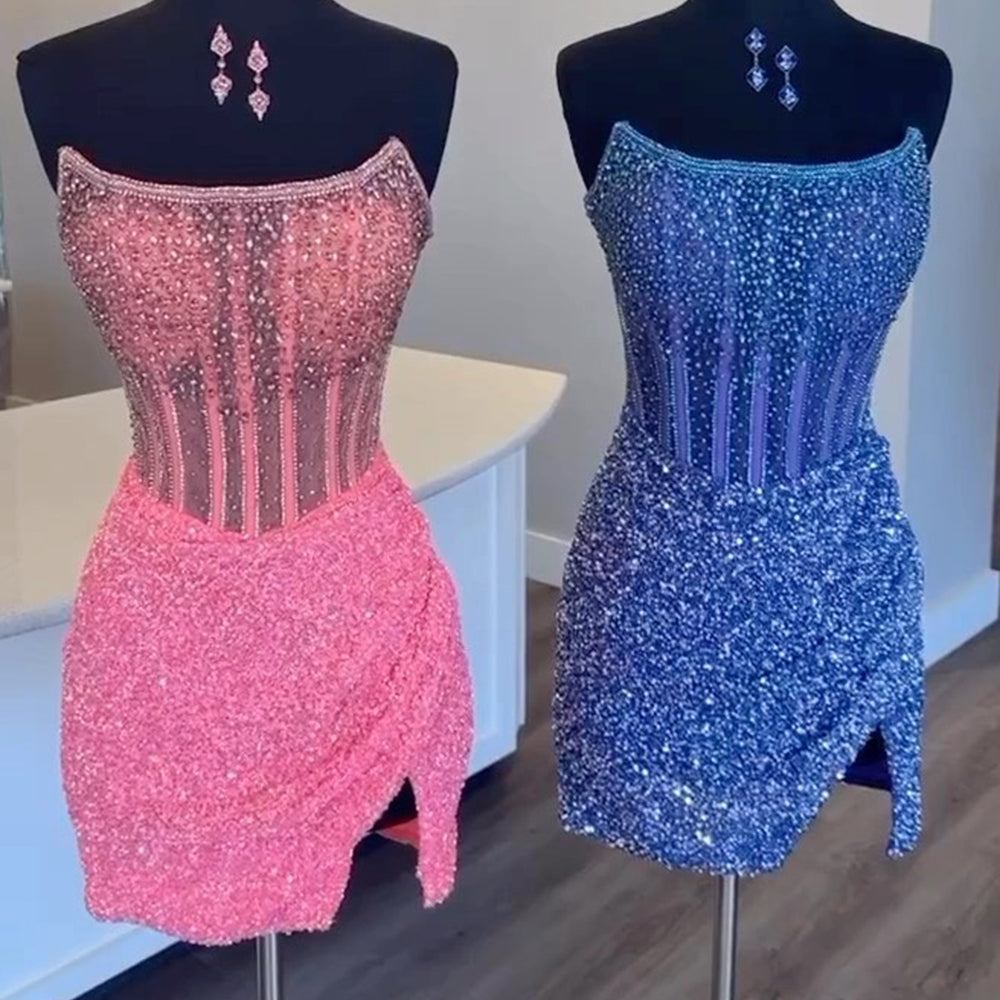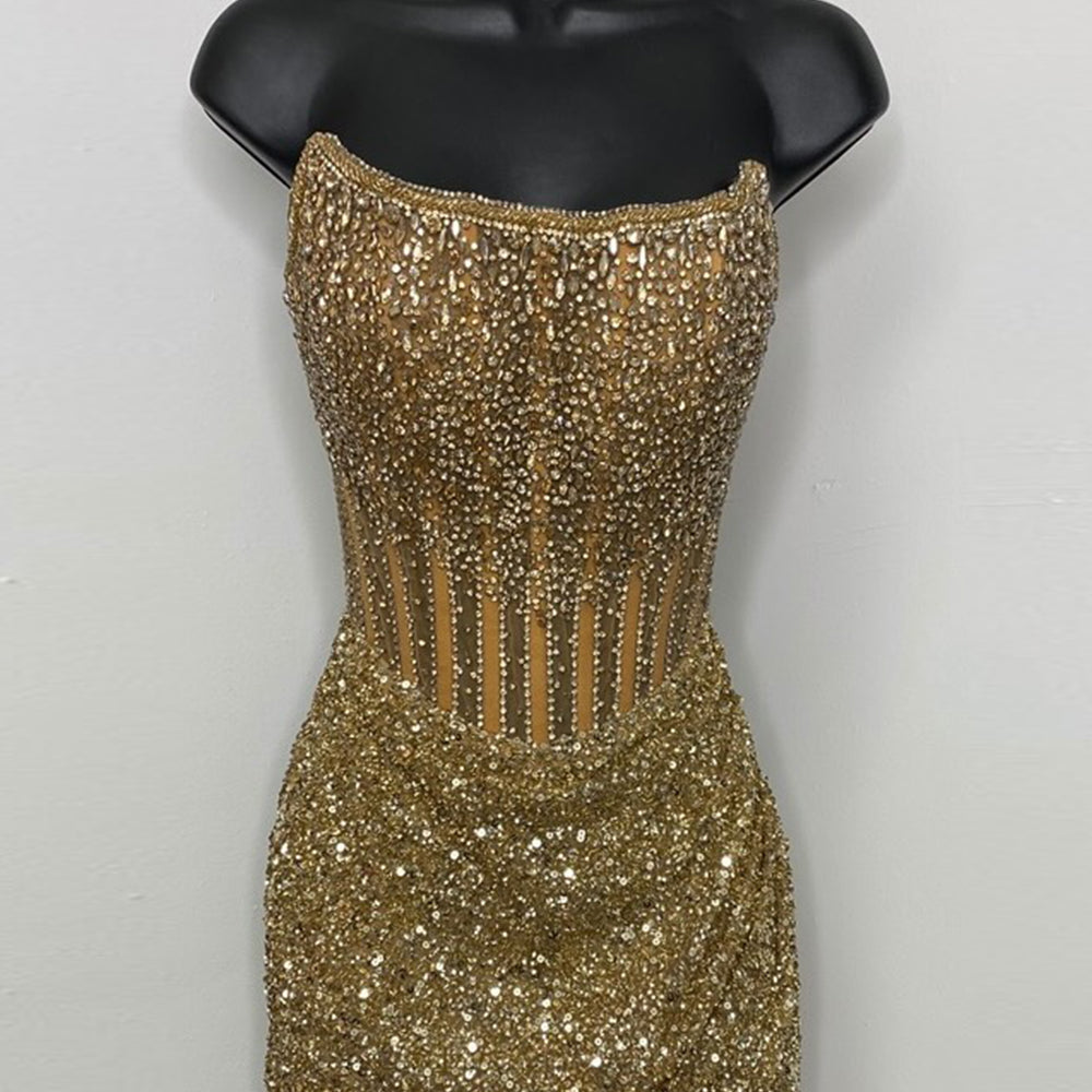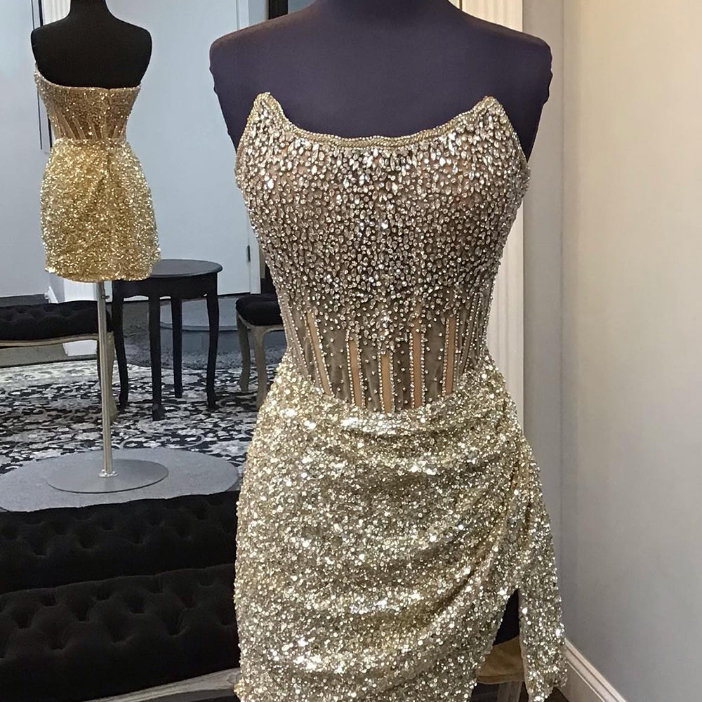 Golden Sparkly Corset Beaded Strapless Tight Short Homecoming Dress