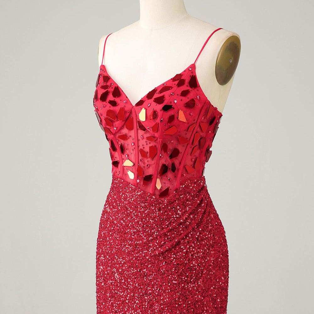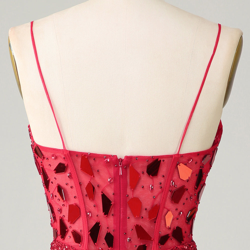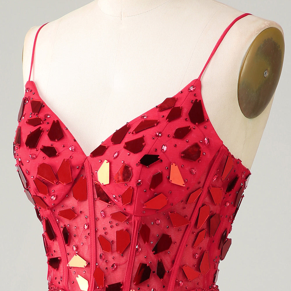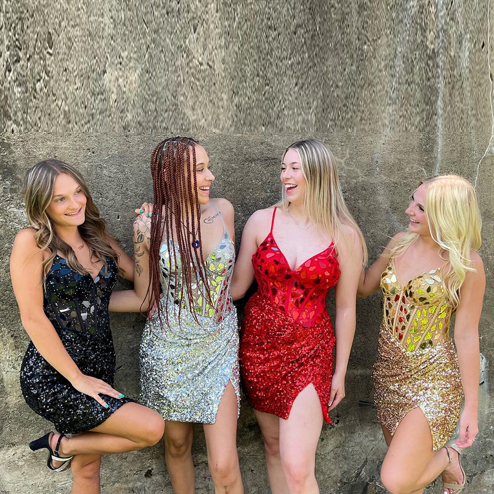 Sparkly Mirror Peacock Blue Corset Tight Short Hoco Dress