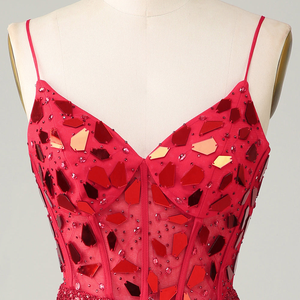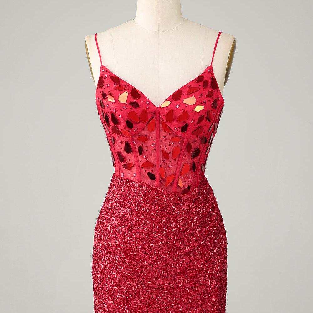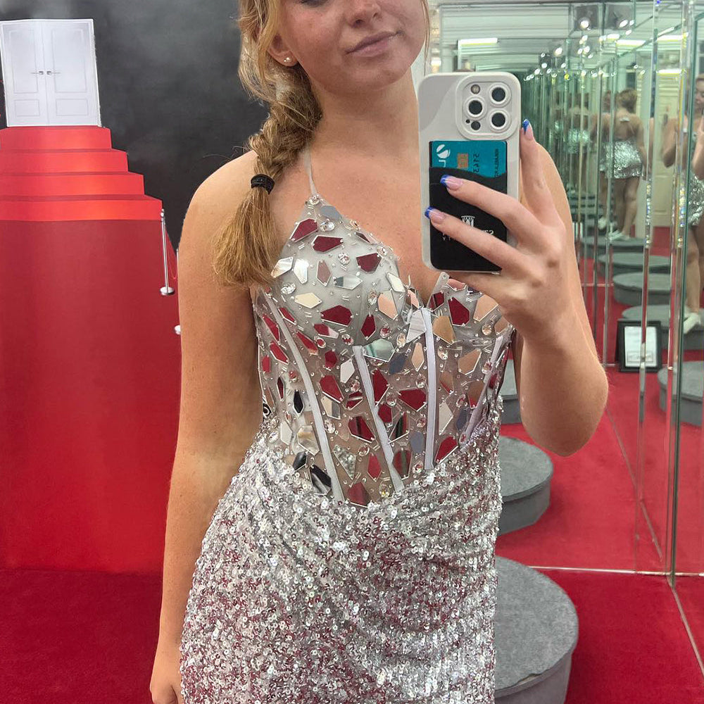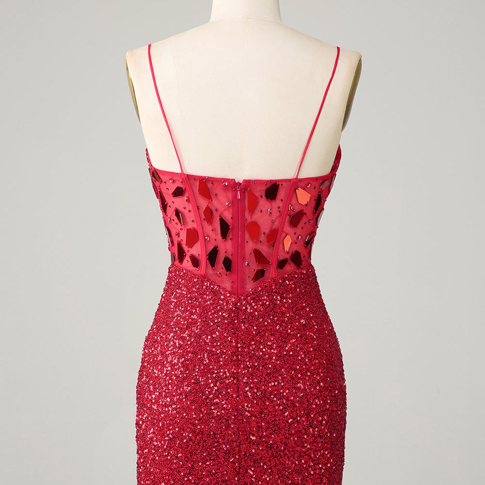 Sparkly Mirror Peacock Blue Corset Tight Short Hoco Dress