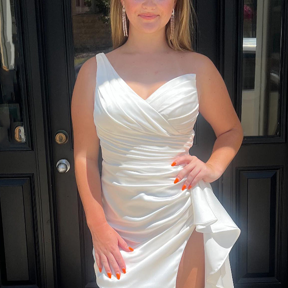 Orange One Shoulder Tight Satin Homecoming Dress with Slit