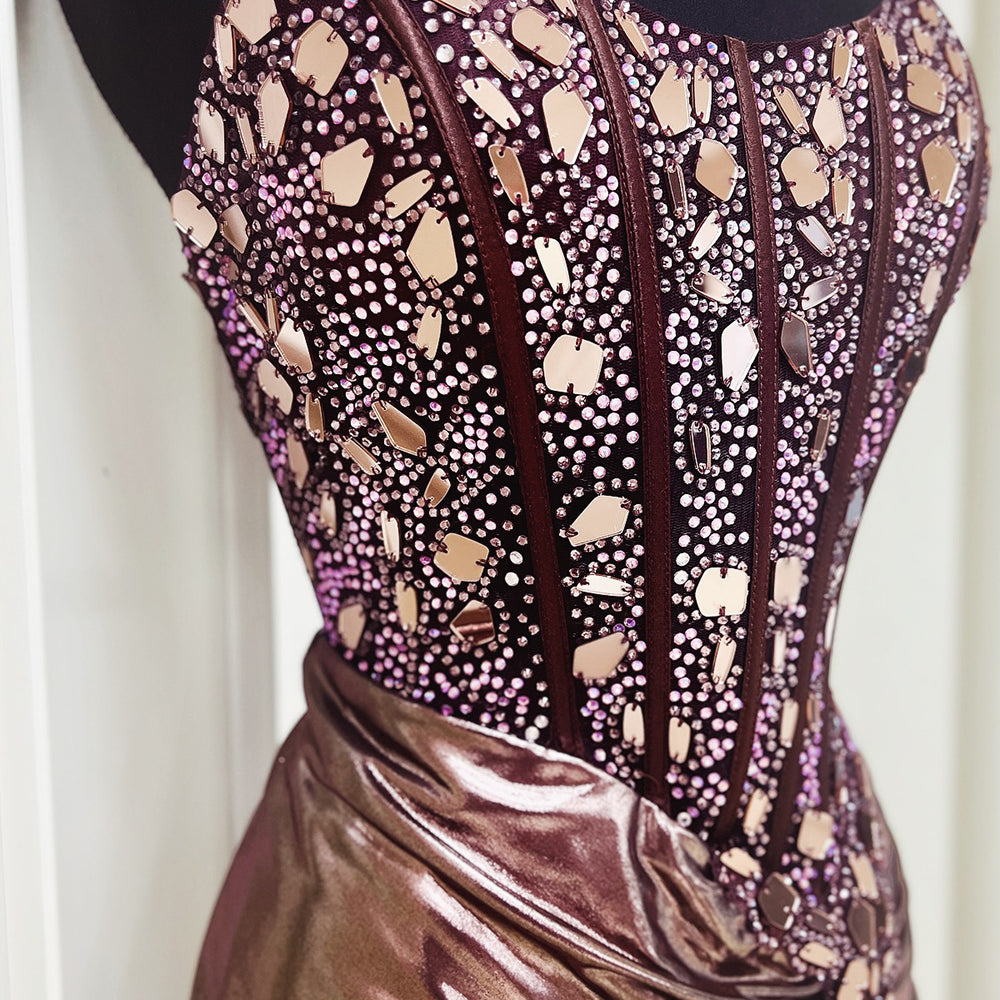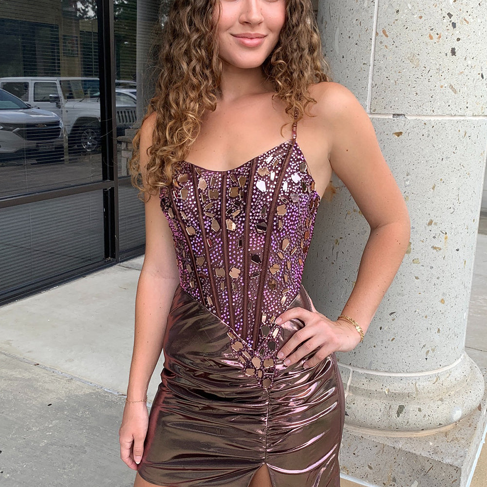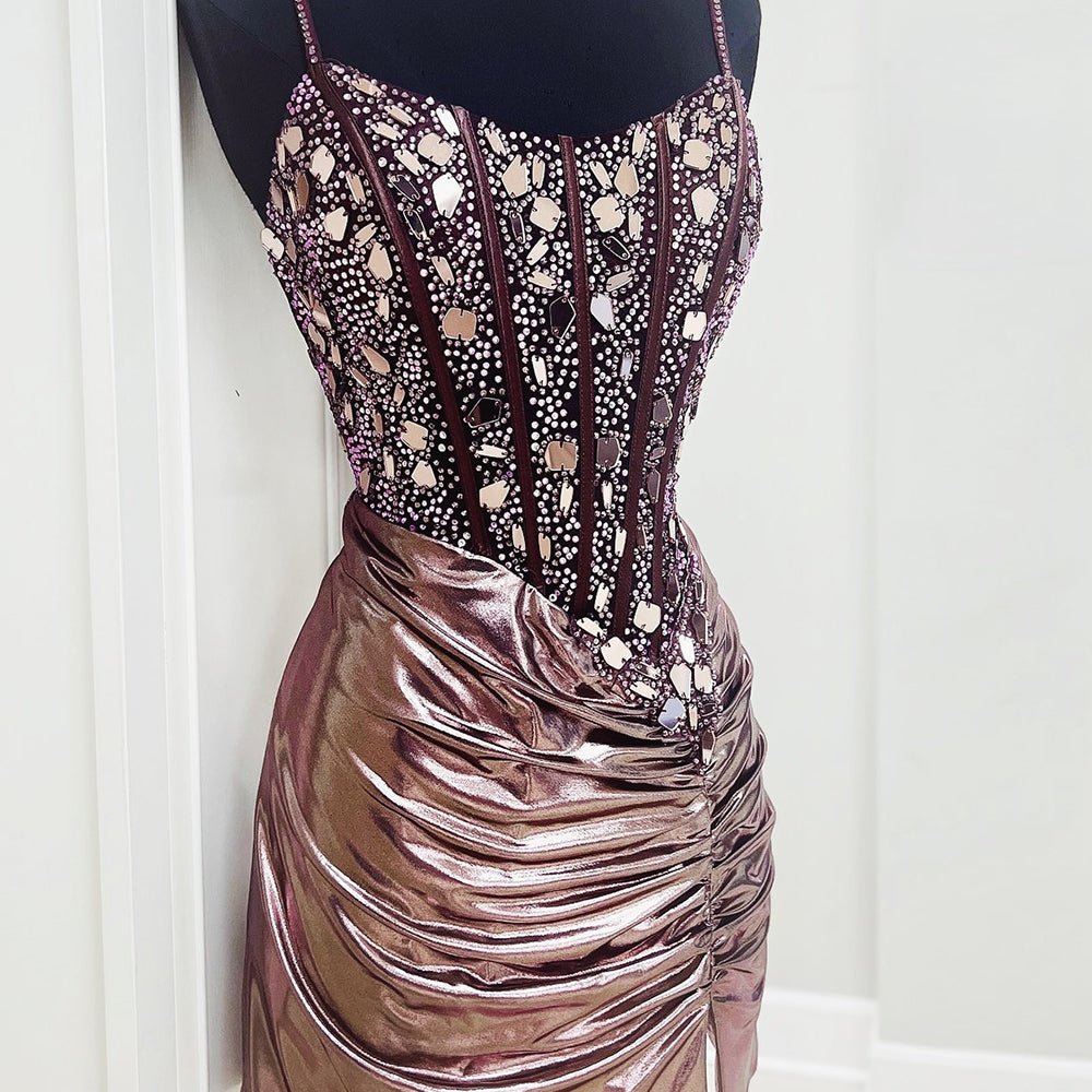 Rose Gold Spaghetti Straps Mirror Tight Short Homecoming Dress with Beading