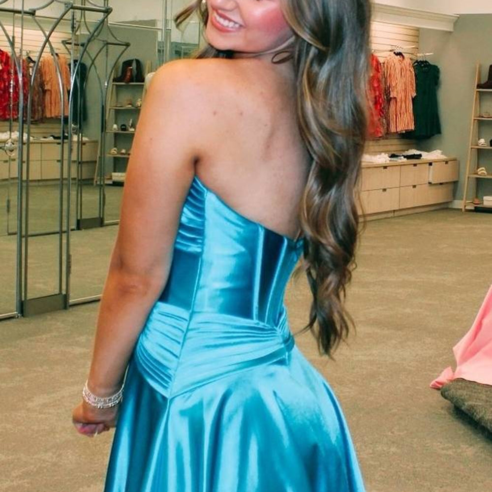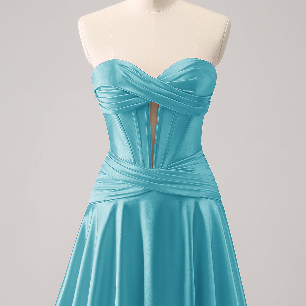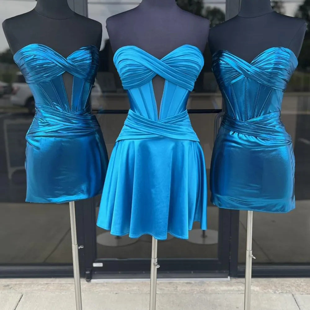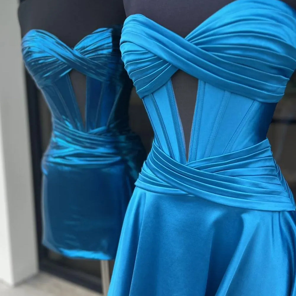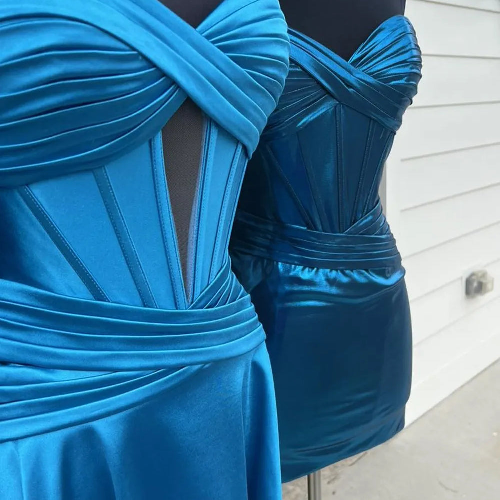 Royal Blue A Line Strapless Corset Short Homecoming Dress with keyhole