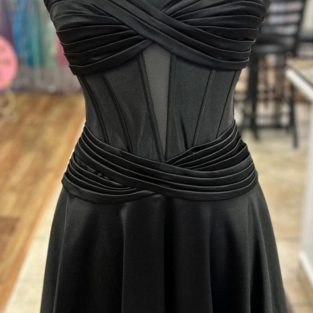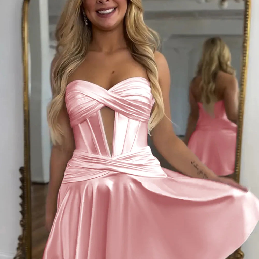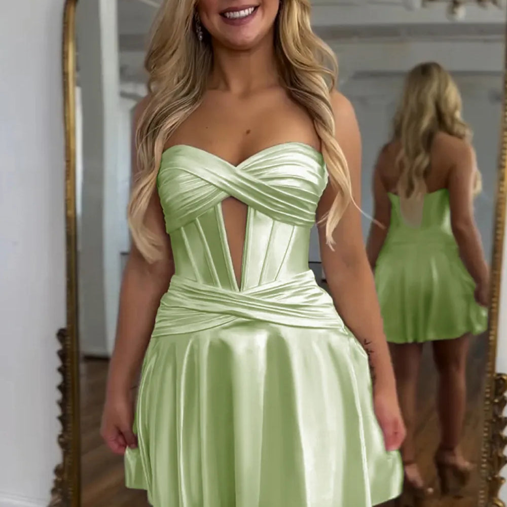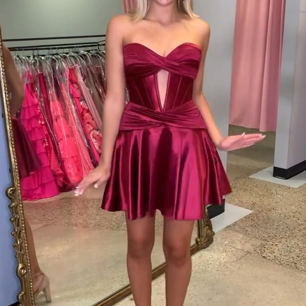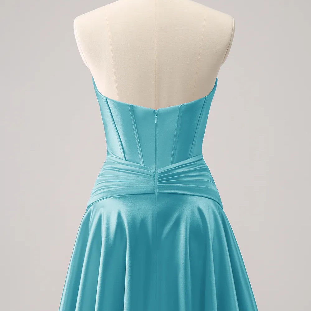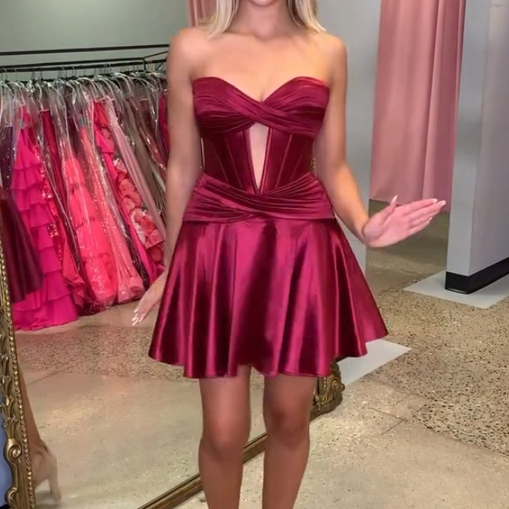 Royal Blue A Line Strapless Corset Short Homecoming Dress with keyhole