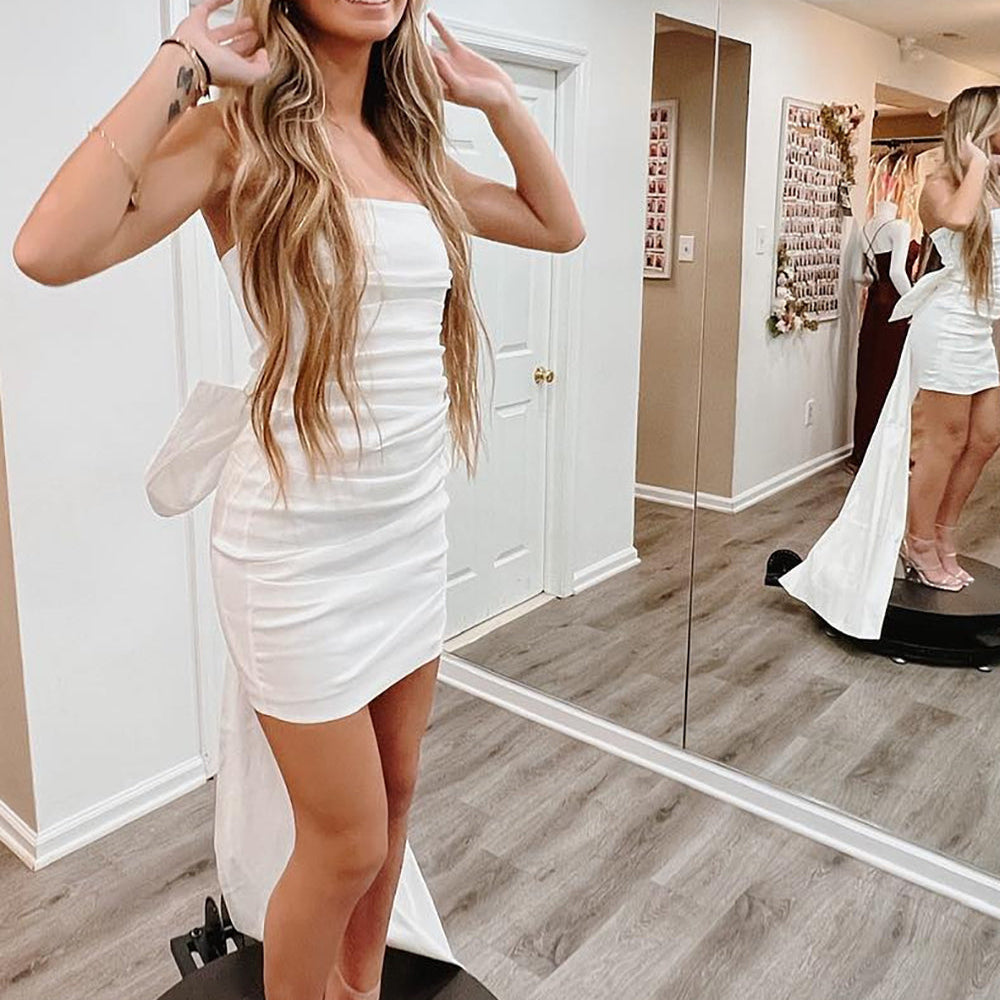 Royal Blue Strapless Tight Short Homecoming Dress with Bowknot