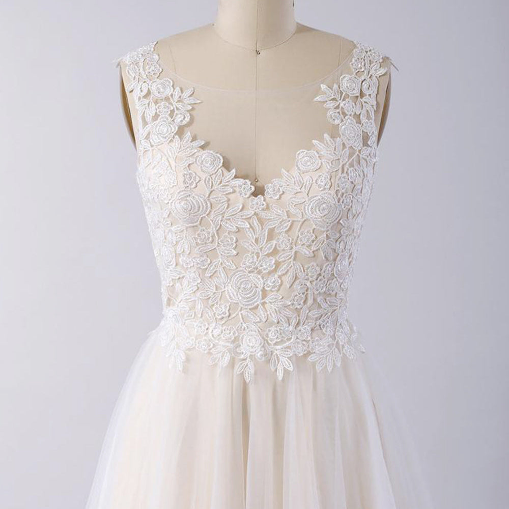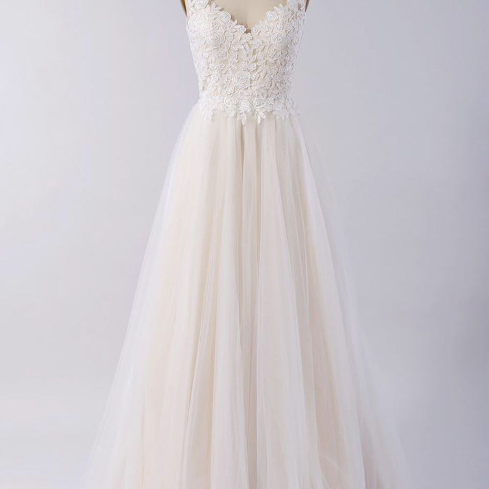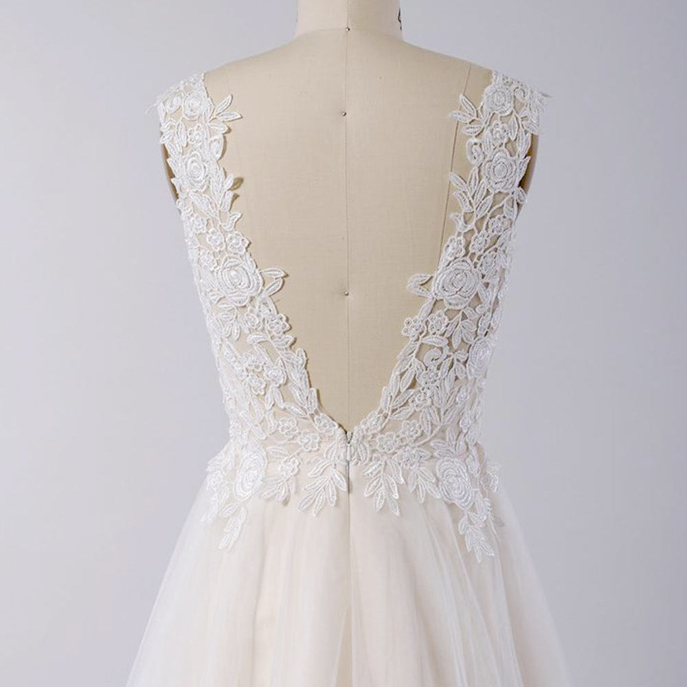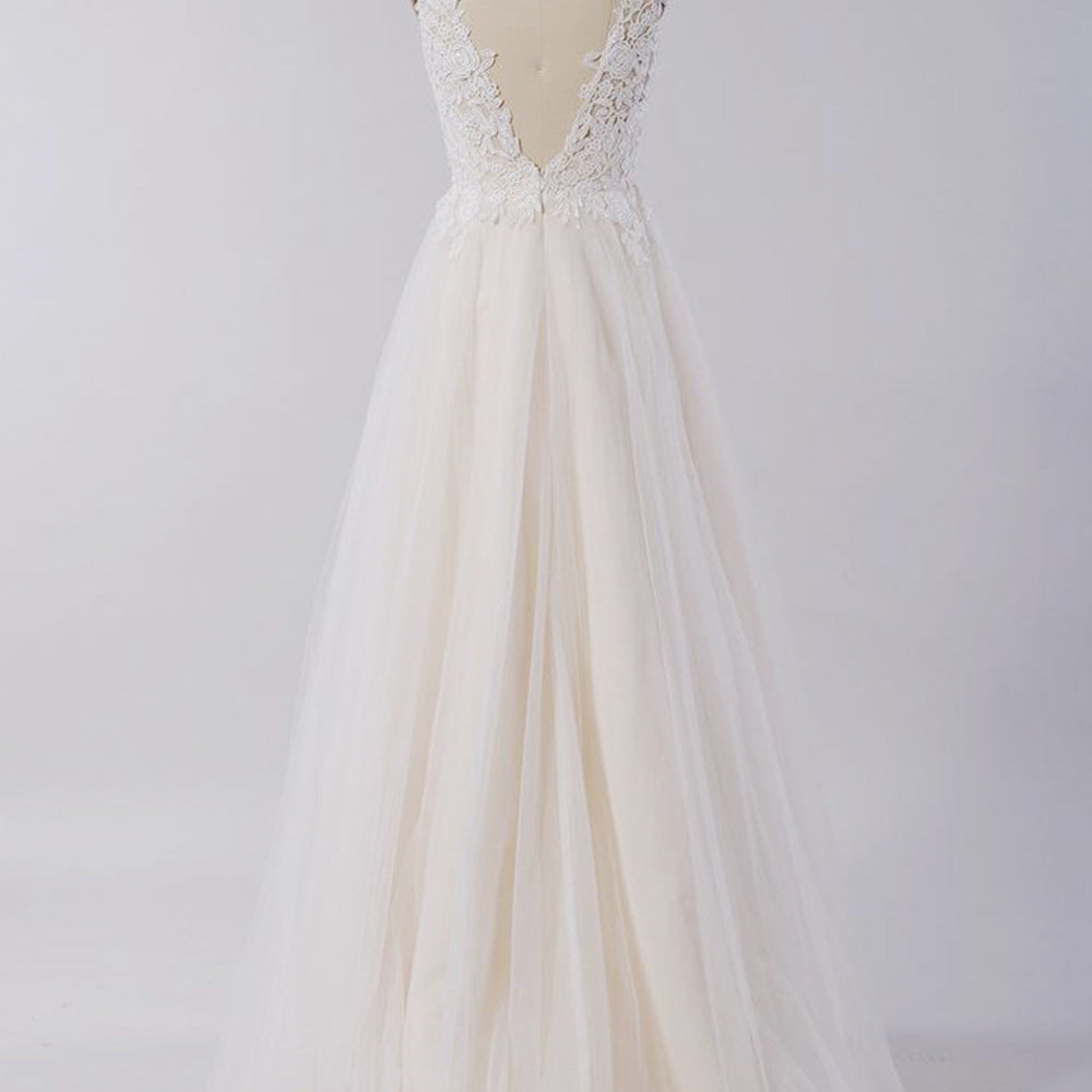 Awesome Long A-line Appliques Lace Tulle Open Back Wedding Dress