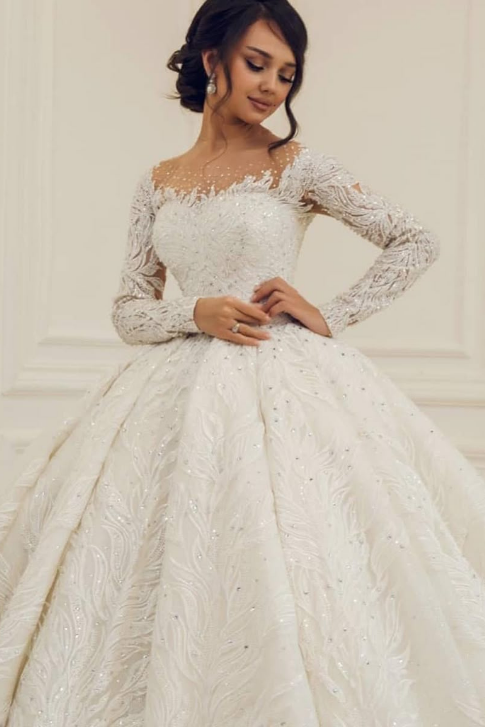 Luxurious Off-the-Shoulder Long Sleeves Ball Gown Wedding Dress
