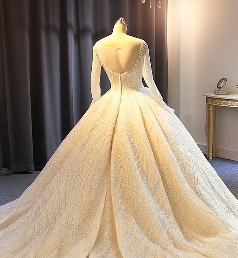 Luxury Long Ball Gown Sweetheart Lace Wedding Dresses with Sleeves