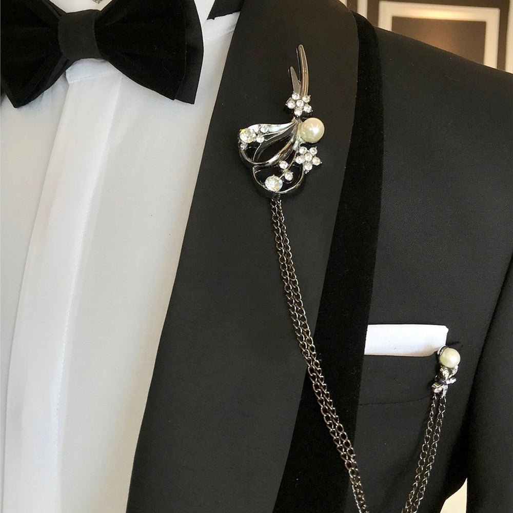 Antoine Gentle Black Shawl Lapel Three Pieces Wedding Suits