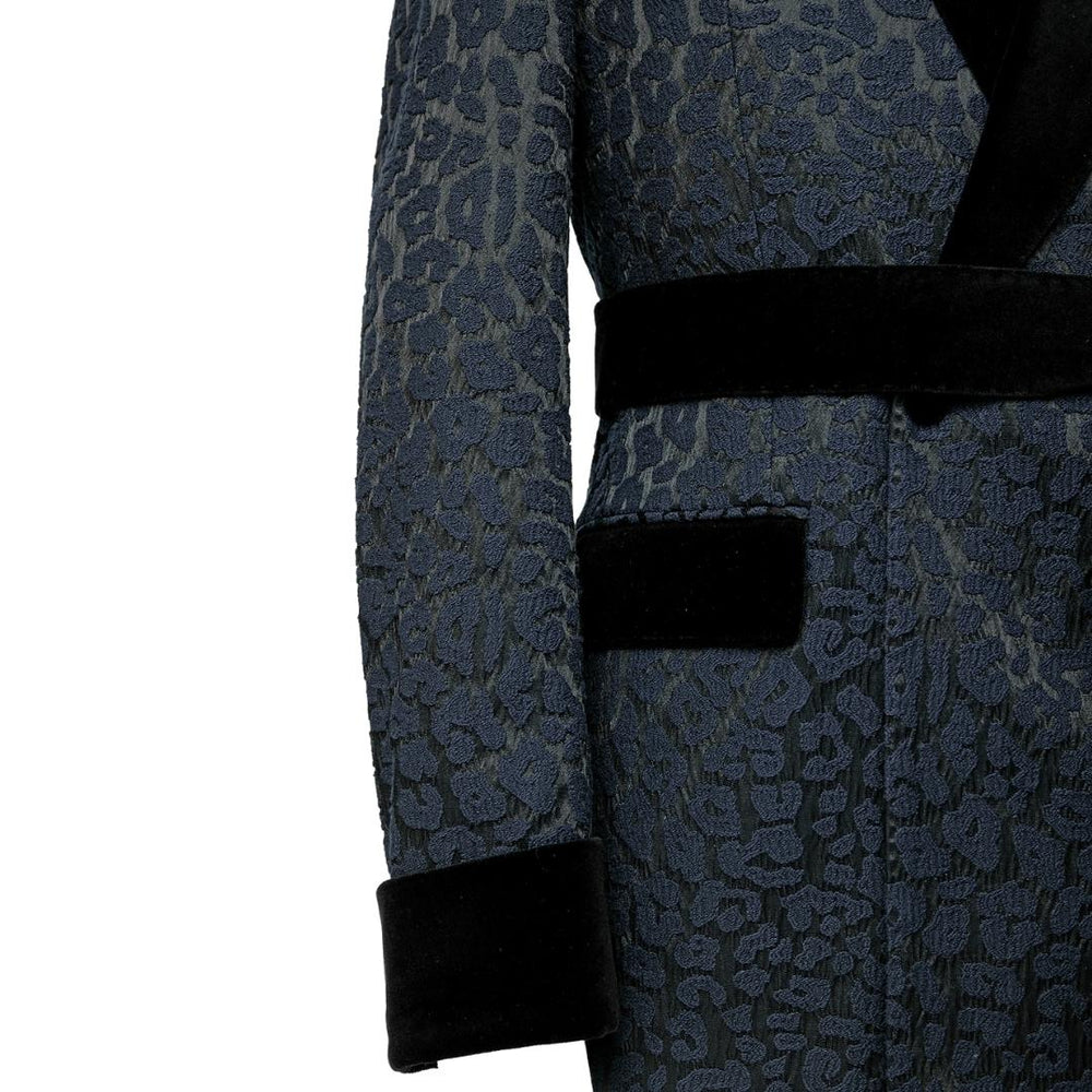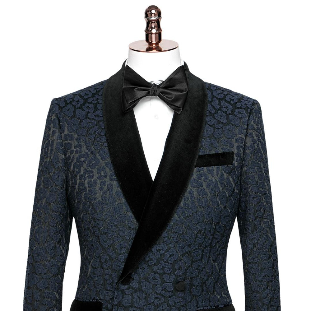 Aubrey Chic Navy Blue Shawl Lapel Two Pieces Jacquard Wedding Suits