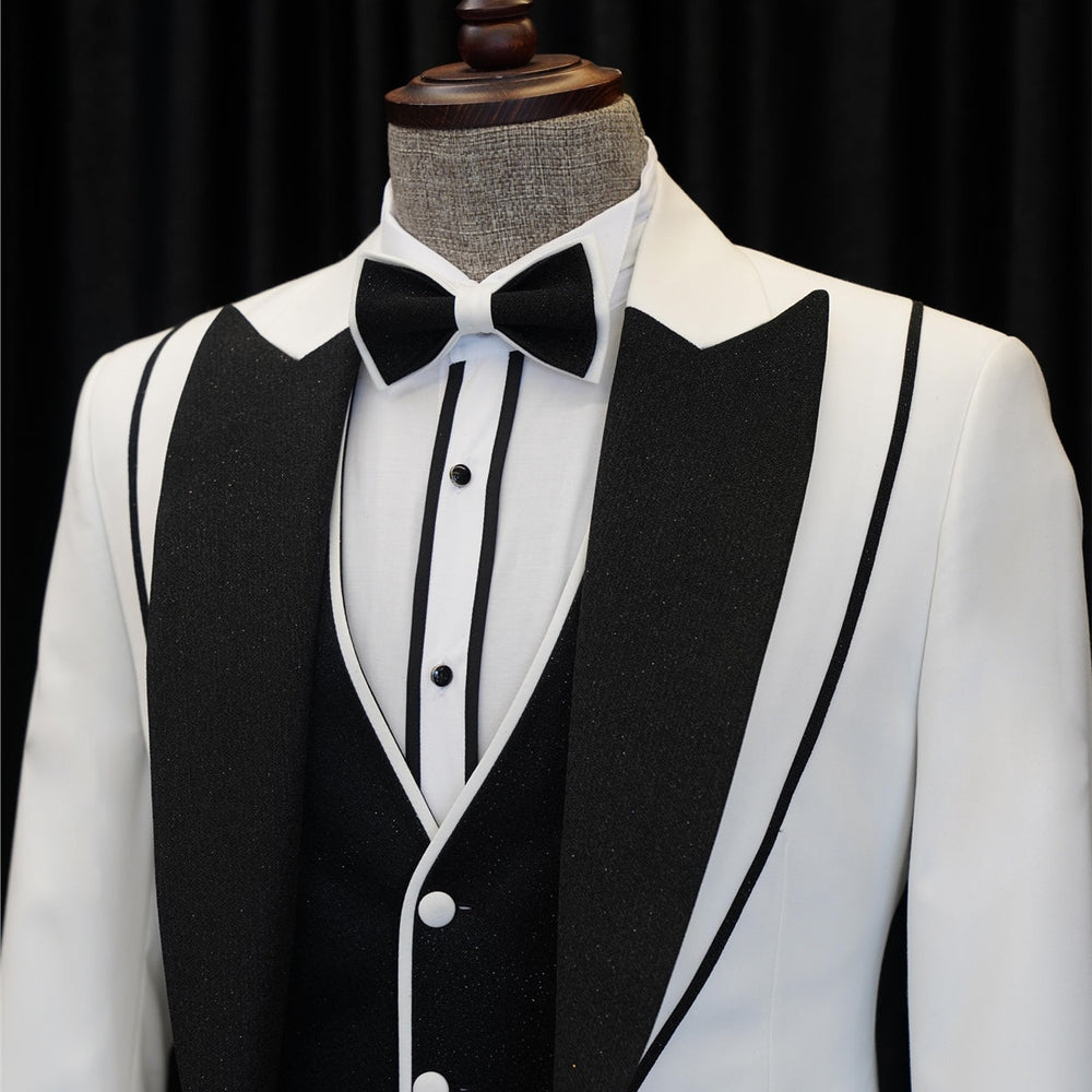 Classic White Shawl Lapel Three Pieces Bespoke Wedding Men Suits