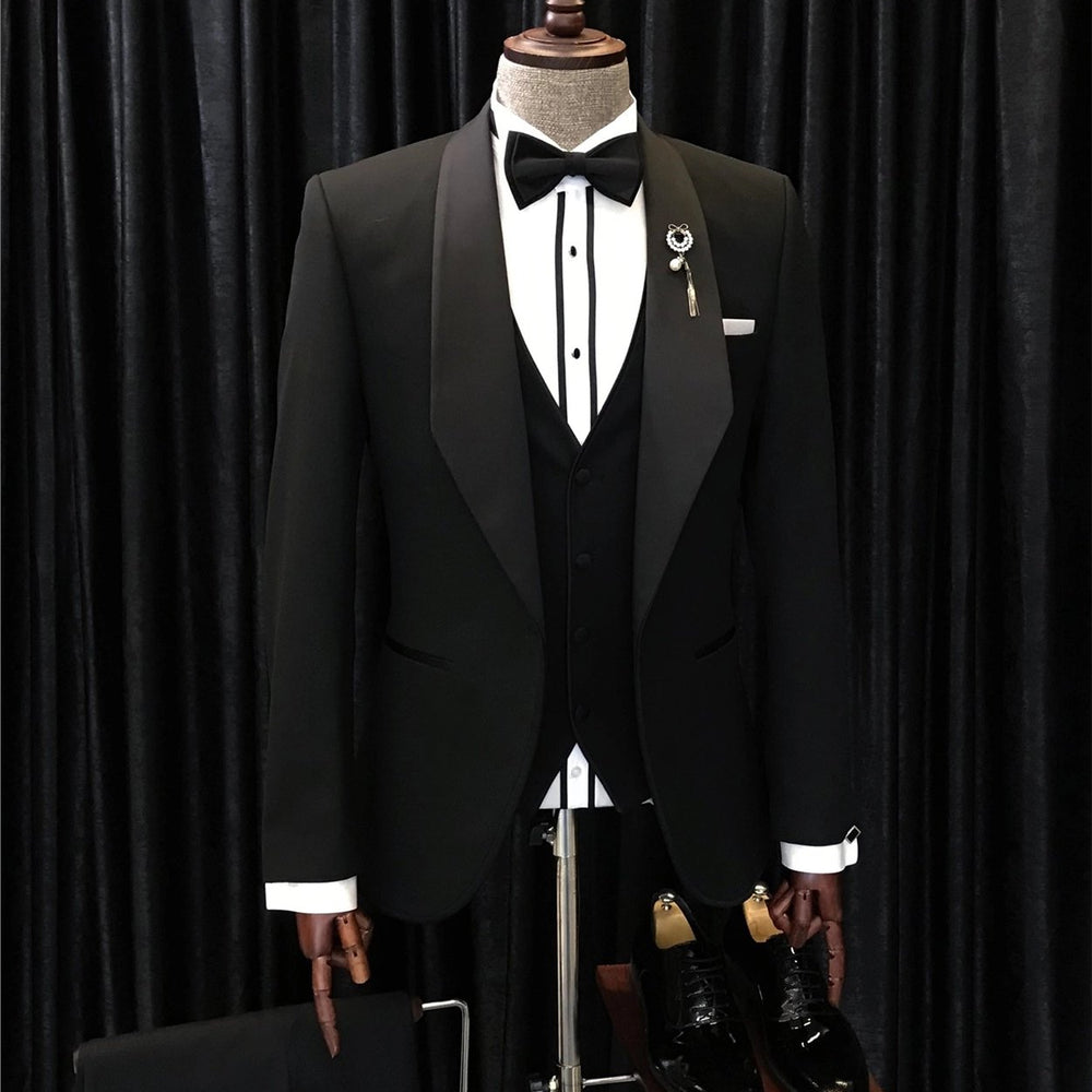 Craig Formal Black Three Pieces Shawl Lapel Men Suits For Wedding