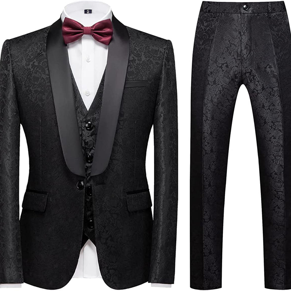 Gregary Fancy Black Jacquard Shawl Lapel Three Pieces Men Suits For Wedding