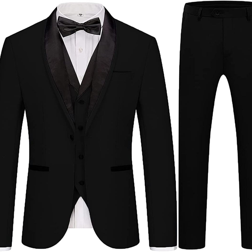 Gustave Formal Black Three Pieces Shawl Lapel Men Suits For Wedding