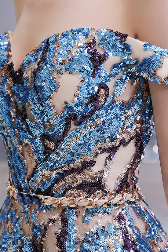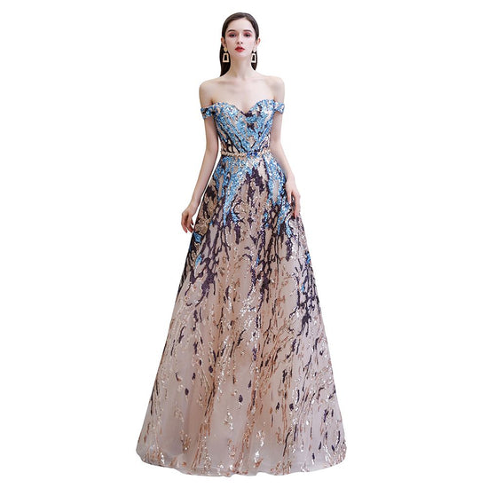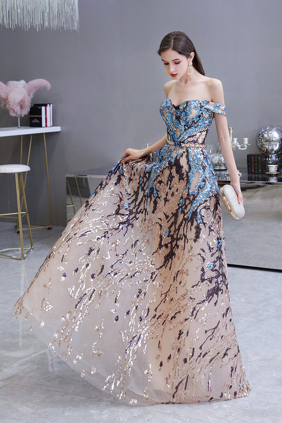 Long A-line Off-the-Shoulder Sequins Prom Dress