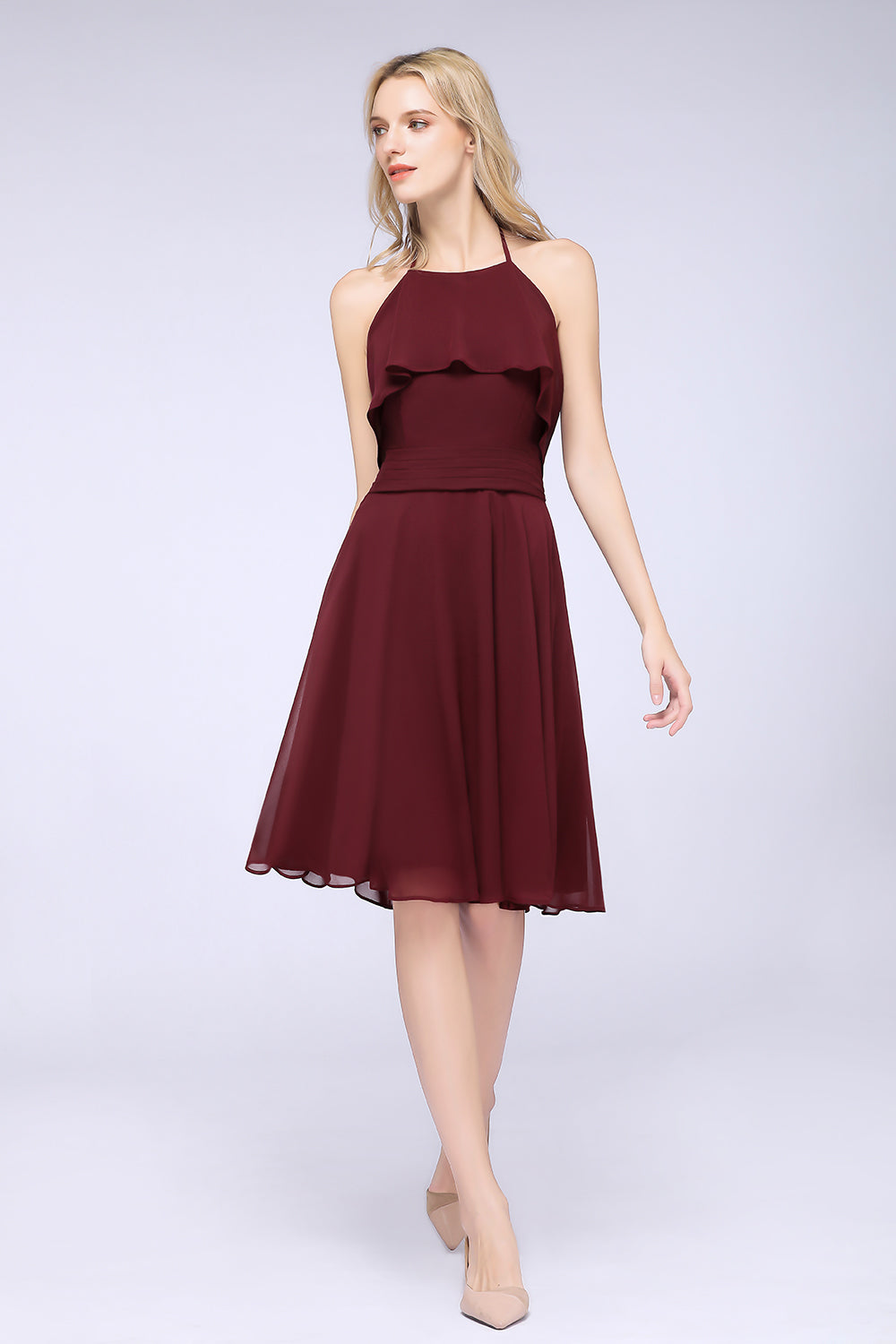 A-Line Chiffon Halter Sleeveless Short Bridesmaid Dress with Ruffles