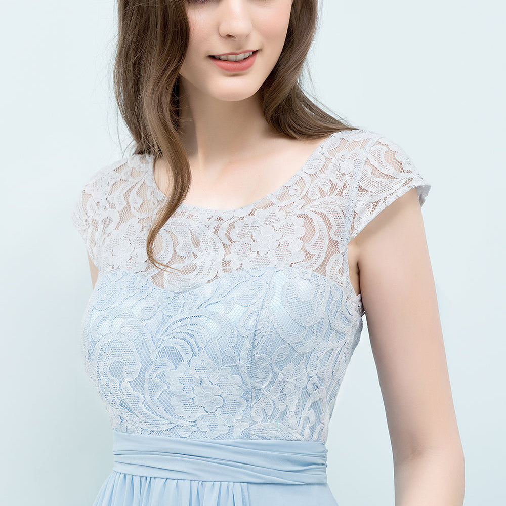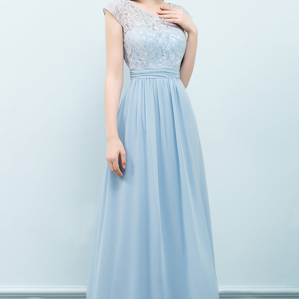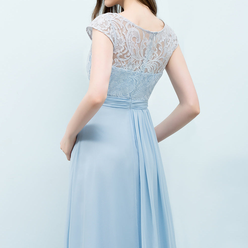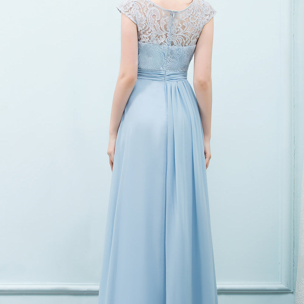 A-line Chiffon Lace Scoop Long Bridesmaid Dresses with Sleeves